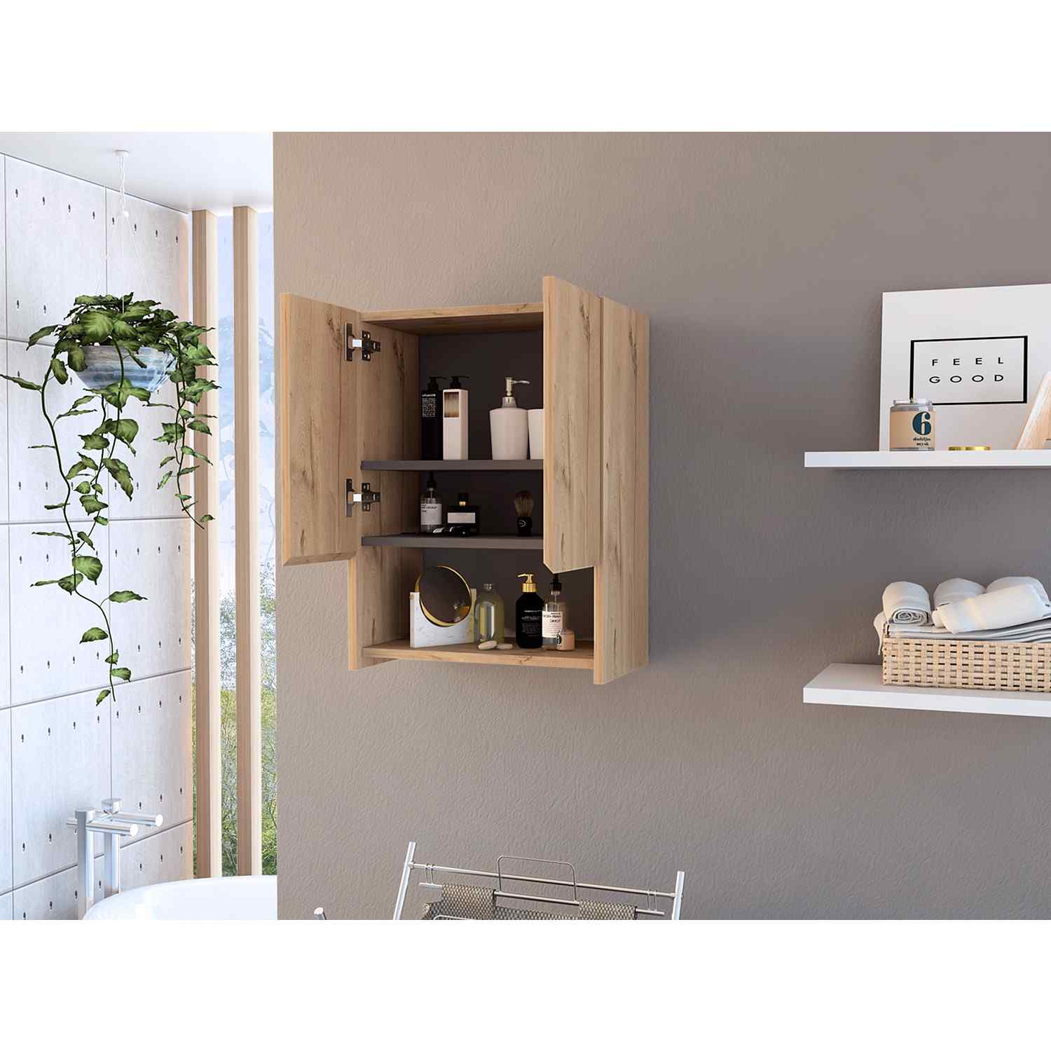 Gabinete de Baño Ventus Duna y Plomo 60x45cm Cuadrado con Dos Entrepaños