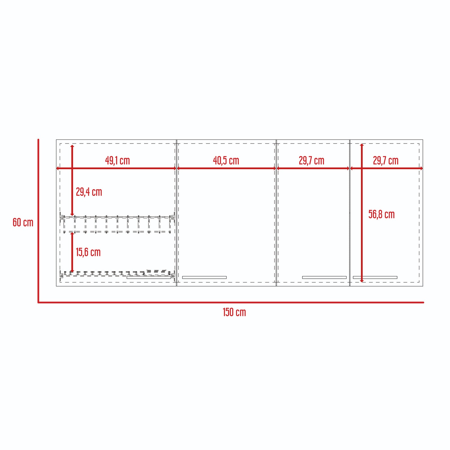 Mueble Superior de Cocina Blanco y Caramelo 150x60cm con Un Entrepaño y con Cuatro Puertas