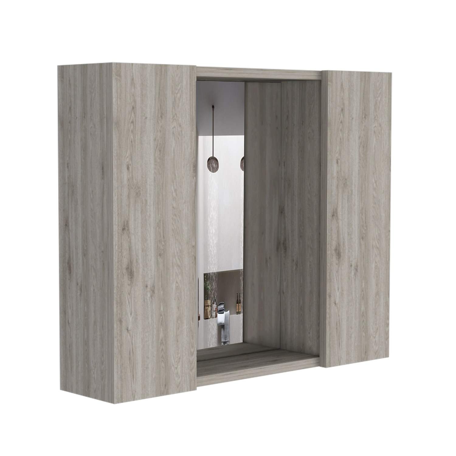 Gabinete de Baño Artemisa Ceniza 60x50cm Cuadrado con Espejo y con Cuatro Entrepaños