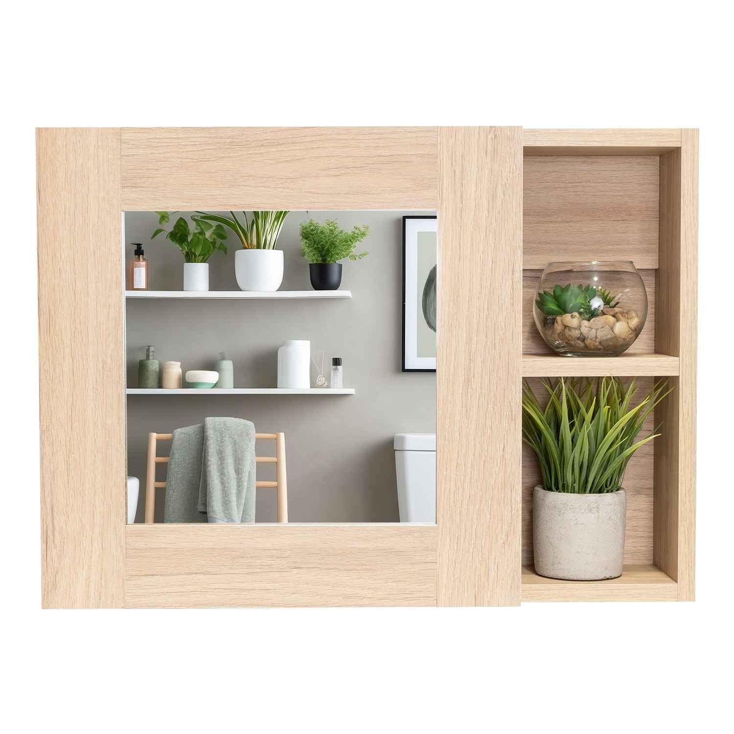 Gabinete de Baño Cairo Rovere 55x40cm Cuadrado con Espejo y con Dos Entrepaños