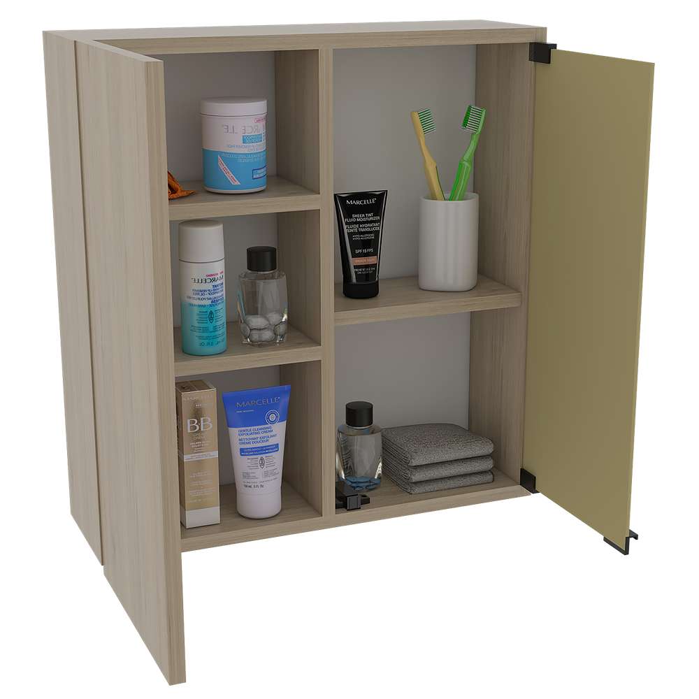 Gabinete de baño con diseño moderno, puerta espejo, multiples superficies para almacenamiento de objetos de aseo