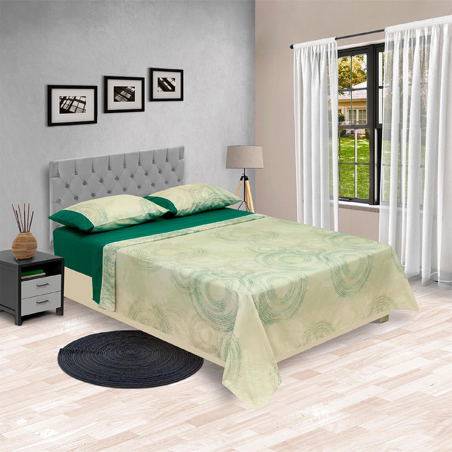 Juego de Sabanas Barcelona Cosmopolita 4 piezas Verde Oscuro Microfibra suavizada