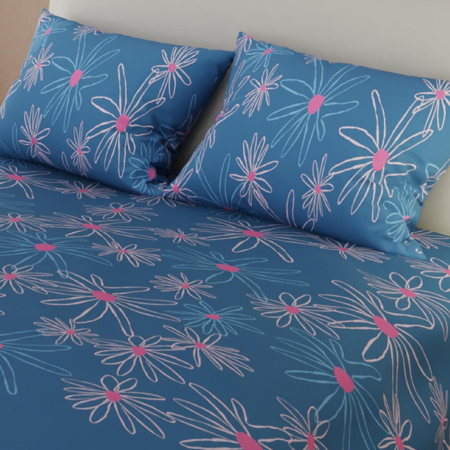 Juego de Sabanas Basic Azul y Blanco Moderno de Microfibra Suavizada