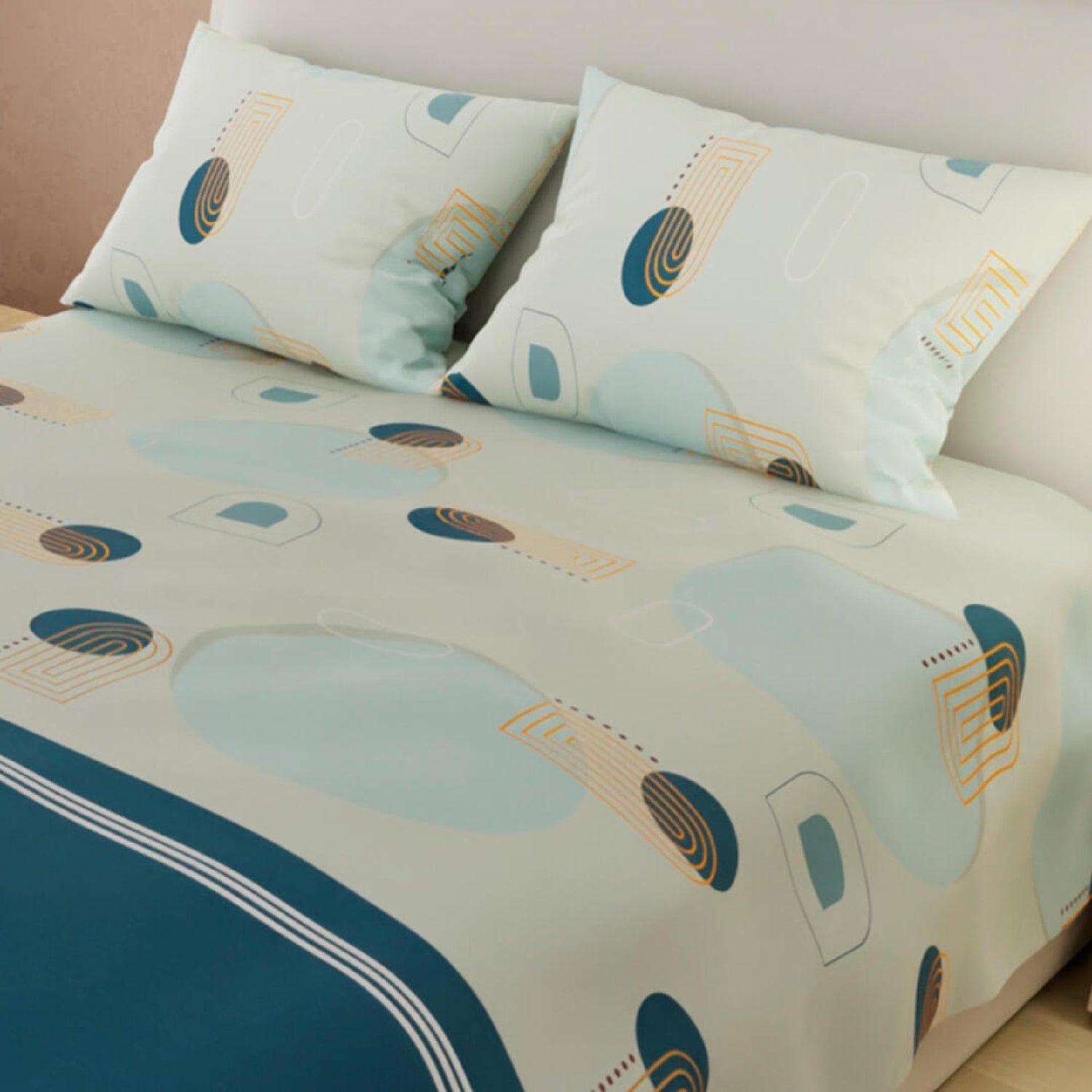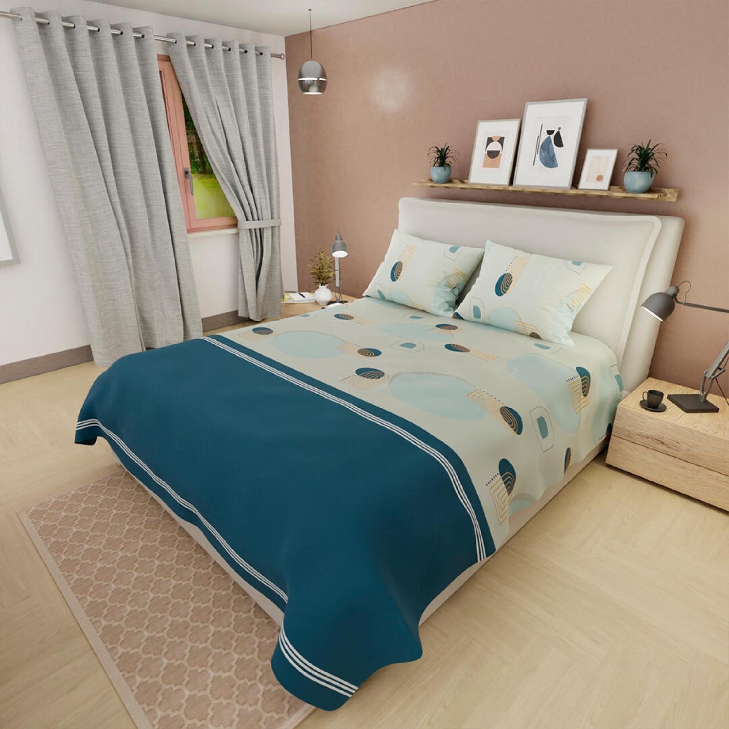 Juego de Sabanas Basic Circulos BlancoAzul 180 Hilos