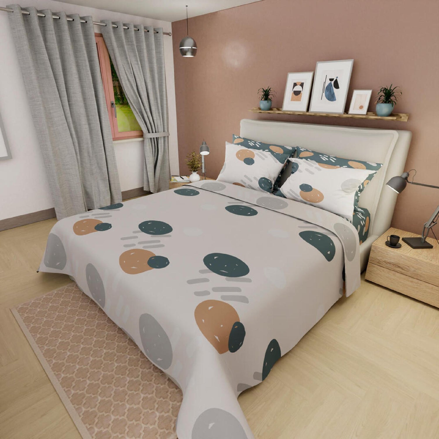 Juego de Sabanas Basic Circulos Verde Oscuro 140x190cm 4 piezas