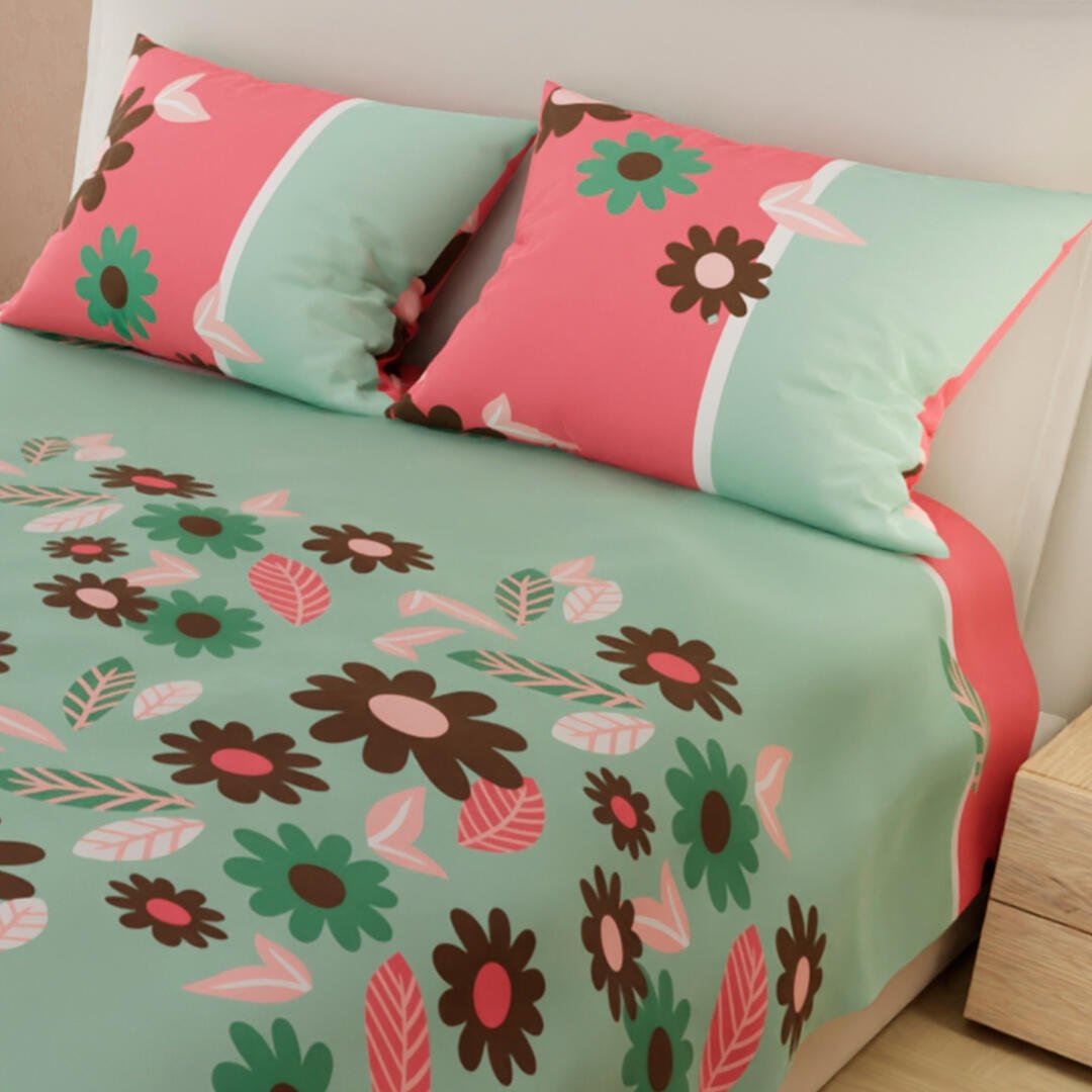 Juego de Sabanas Limila Verde y Rosado para Cama King 200 X 200 Cm Flores