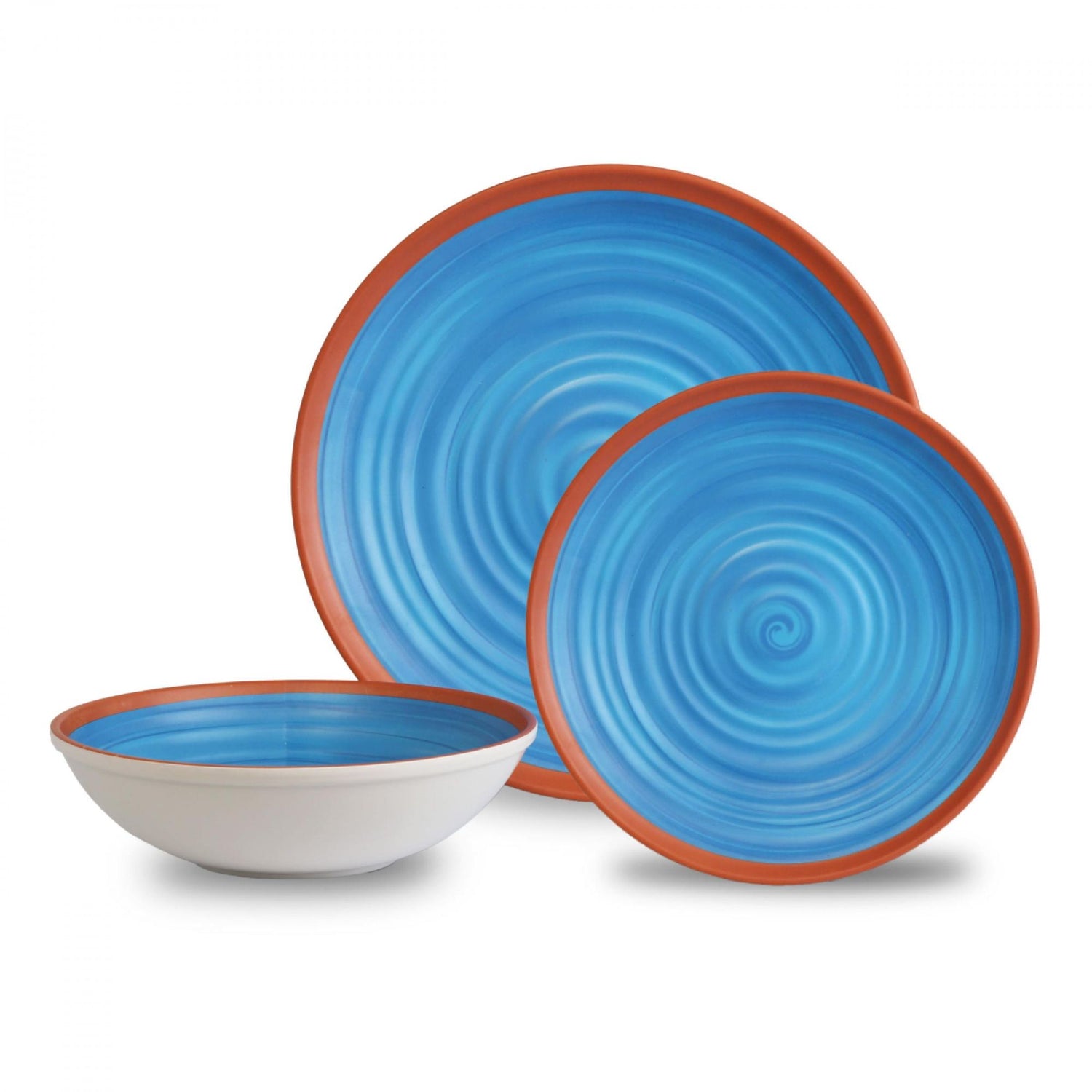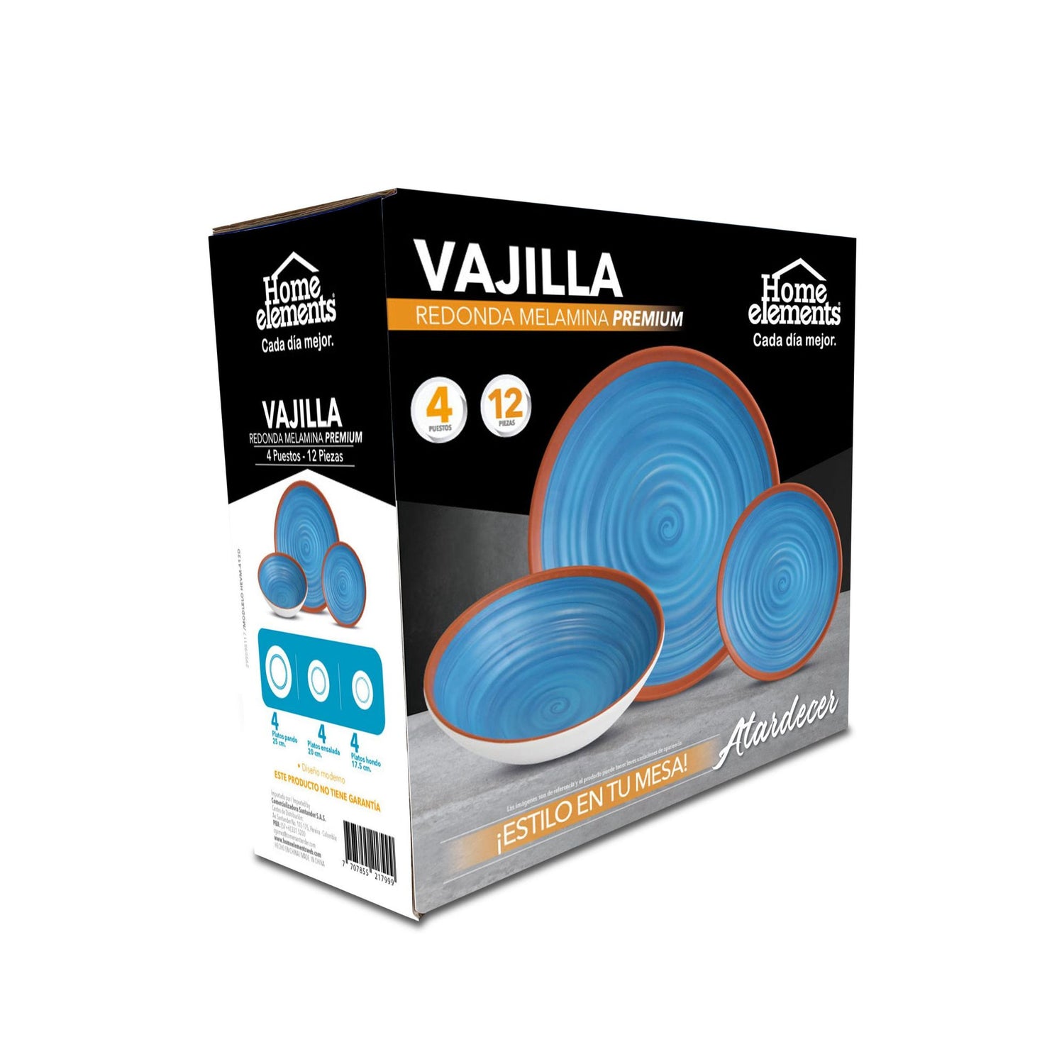 Juego de Vajillas de 12 Piezas Vitrocerámica Azul 25x2.5cm para Cuatro Puestos con Acabado Mate