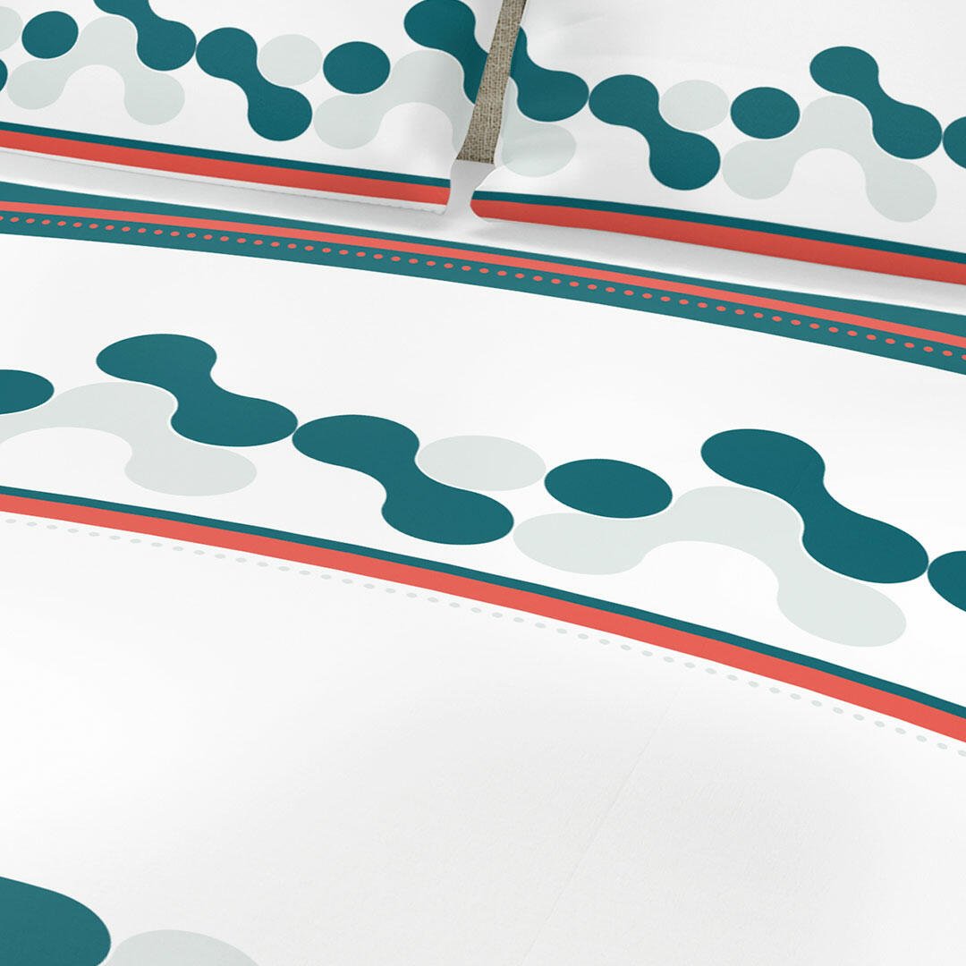 Juego de Sabanas Algodón 180 Hilos King 200 cm Blanco con Círculos Verde Azul