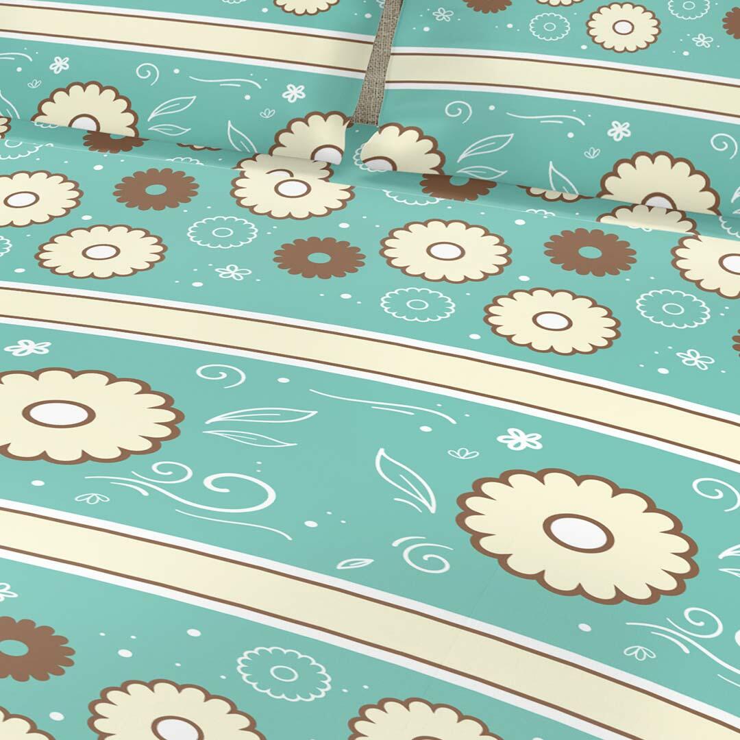 Juego de Sabanas Algodón 180 Hilos King 200 cm Azul con Flores Blancas y Cafes