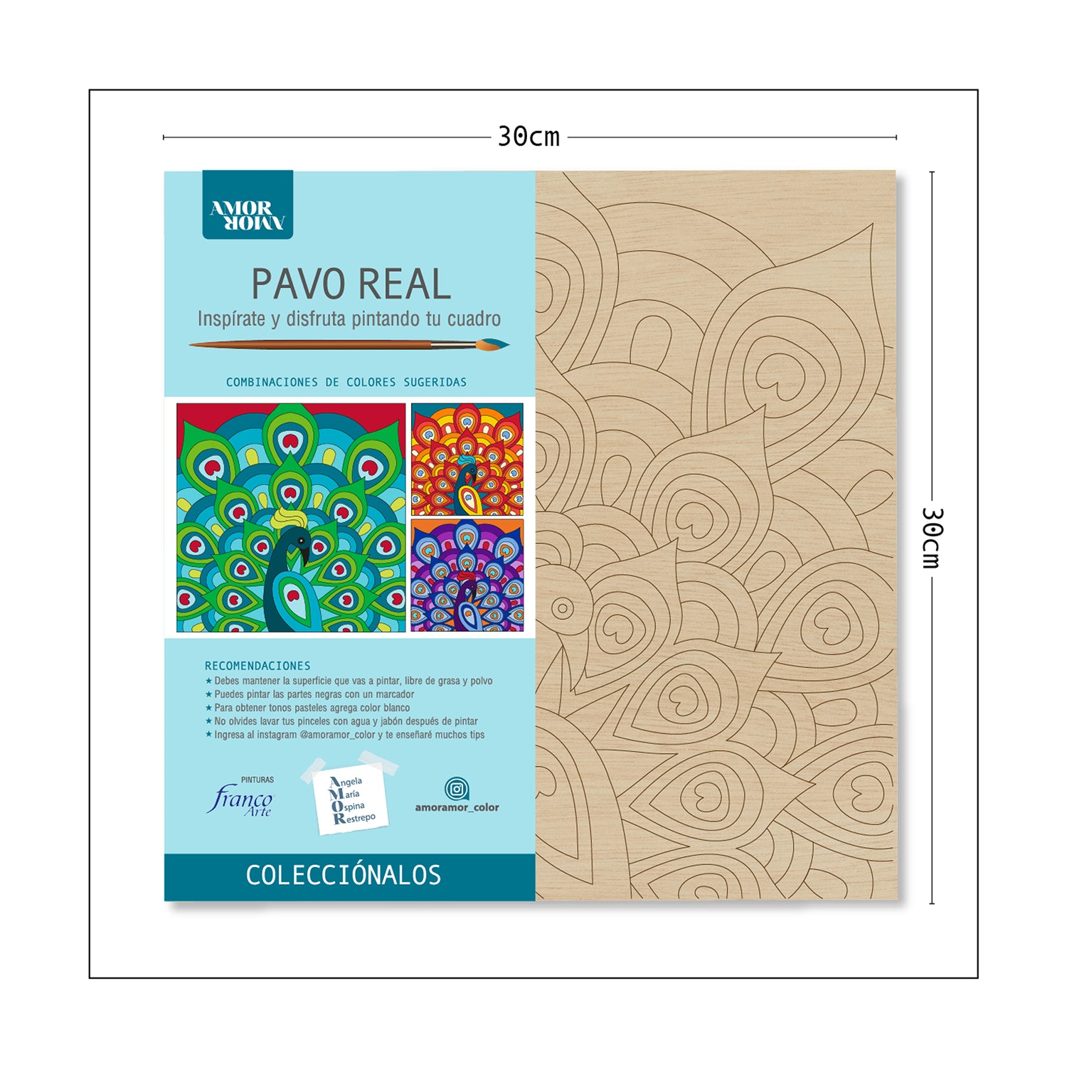 Kit Cuadro Para Pintar Natural 30x30cm De Pavo Real