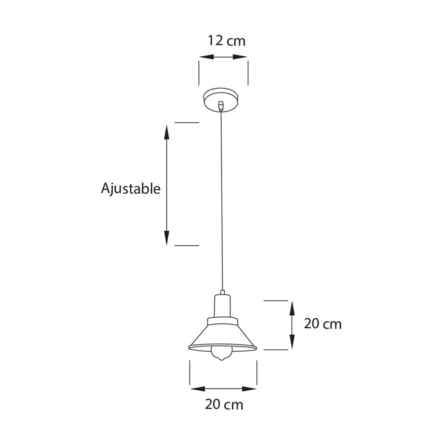 Incluye: bombillo, cable encauchetado de 110 cm ajustable, plafón de 12 cms.