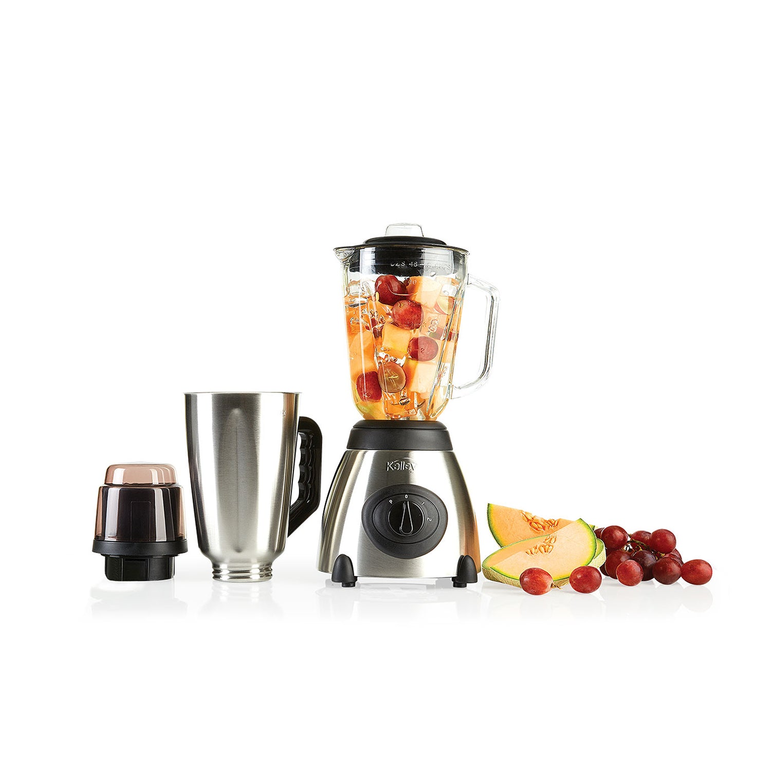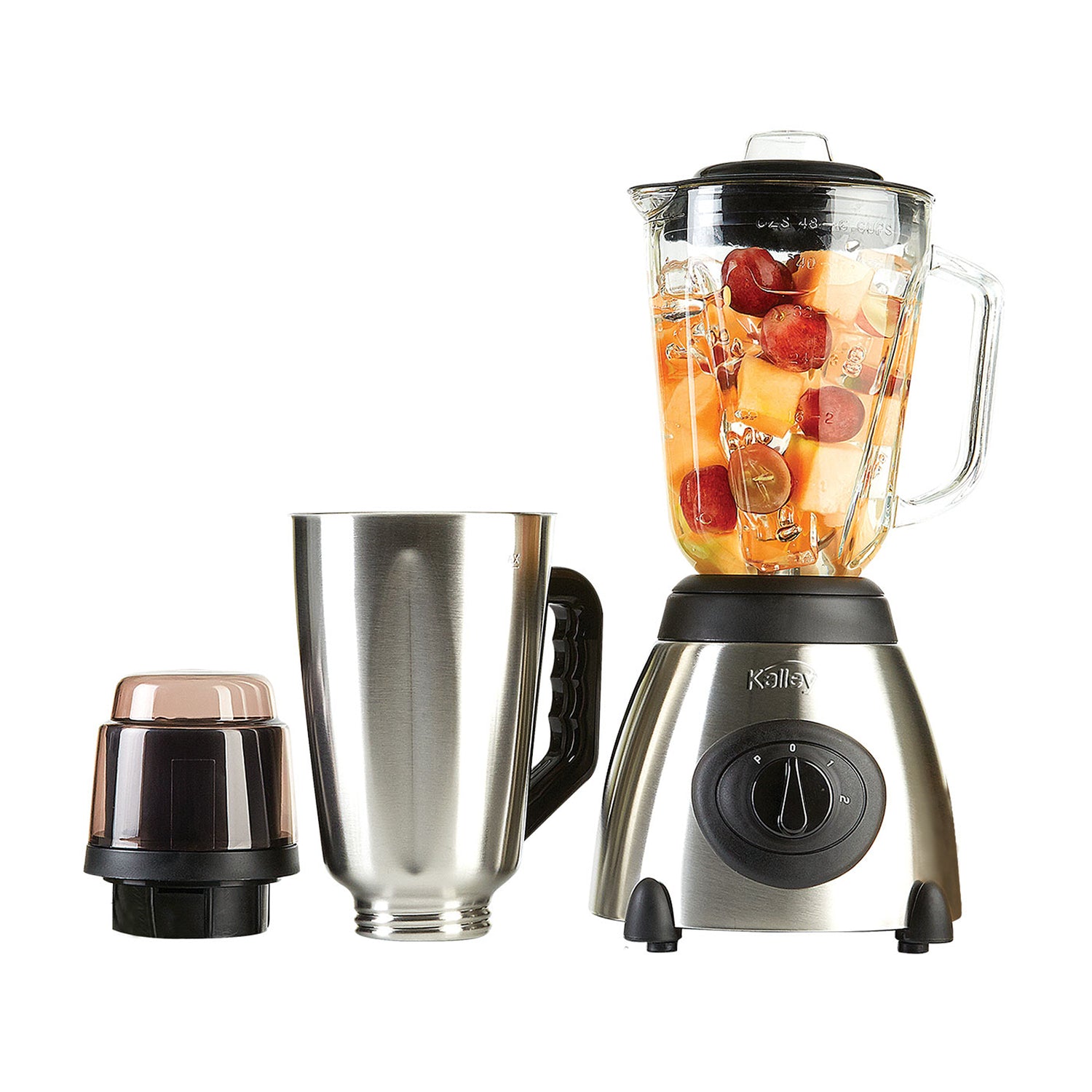 Licuadora Kalley Gris y Negro 18.8x39.7cm de Cuatro Aspas para 1.5 Litros y Dos Velocidades