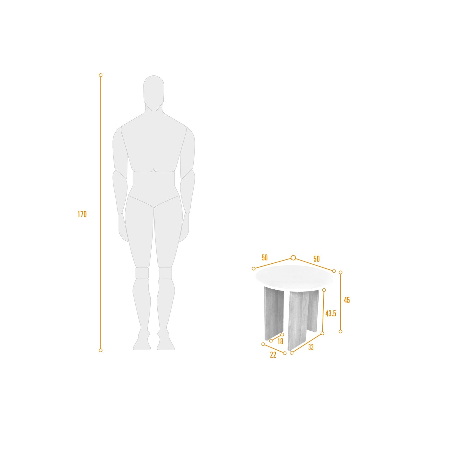 Mesa Auxiliar Circular Maui Blanco y Mácula 50x45cm con Patas