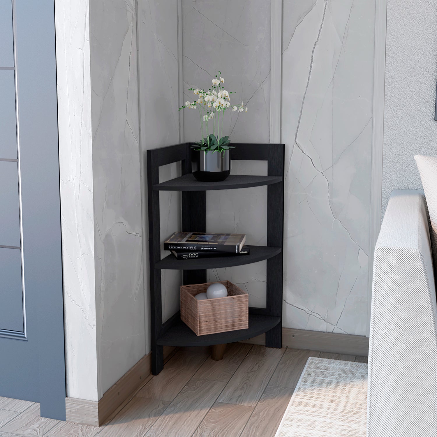 Mesa Auxiliar Esquinera Riga Wengue 38.8x80.6cm con Patas y Tres Compartimientos