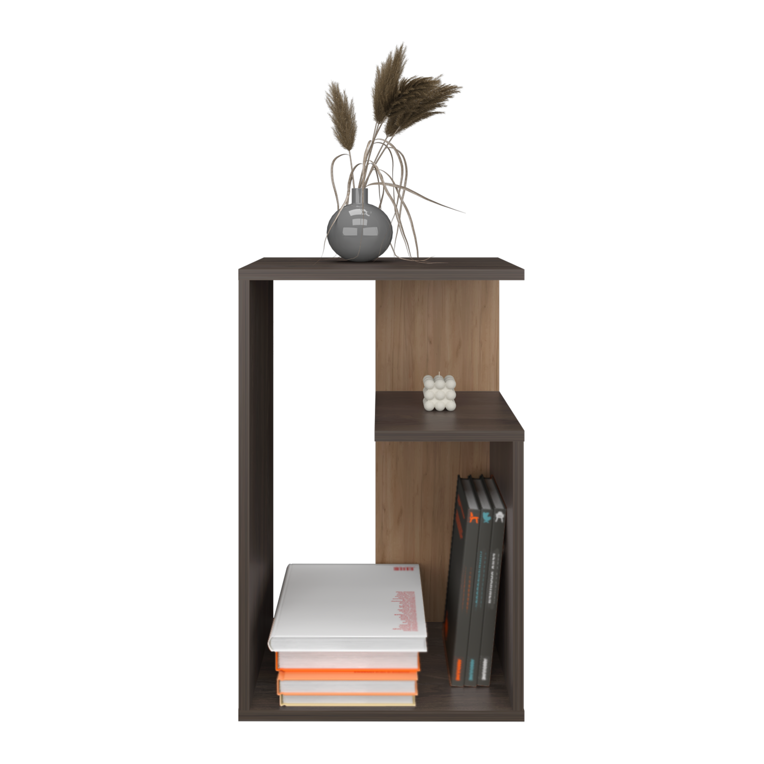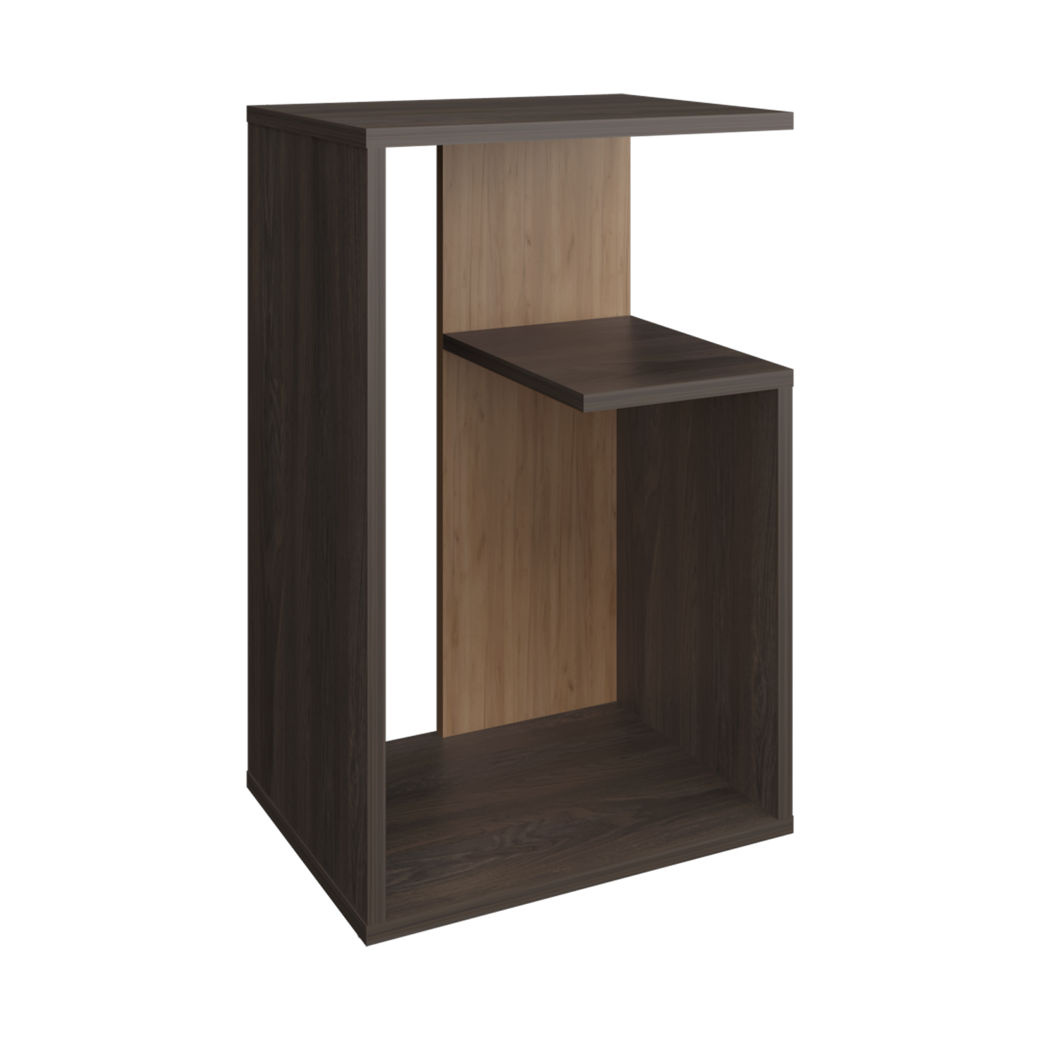 Mesa Auxiliar Everett Carbón y Fresno Europeo 39.8x63.4cm Rectangular con Dos Compartimientos