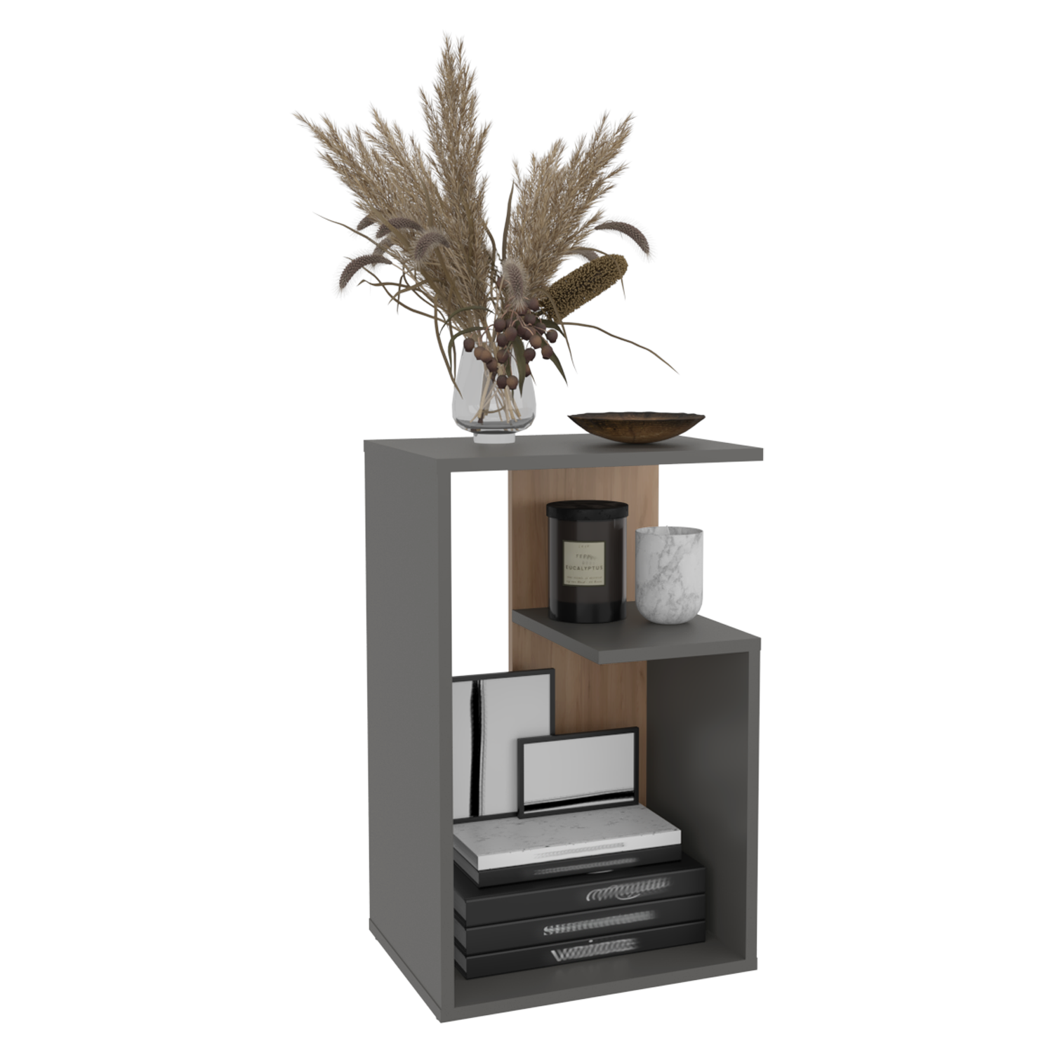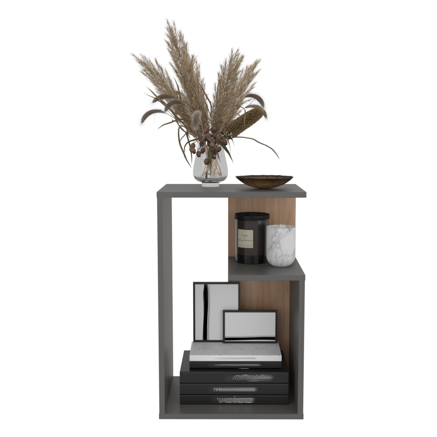 Mesa Auxiliar Everett Plomo y Fresno Europeo 39.8x63.4cm Rectangular con Dos Compartimientos