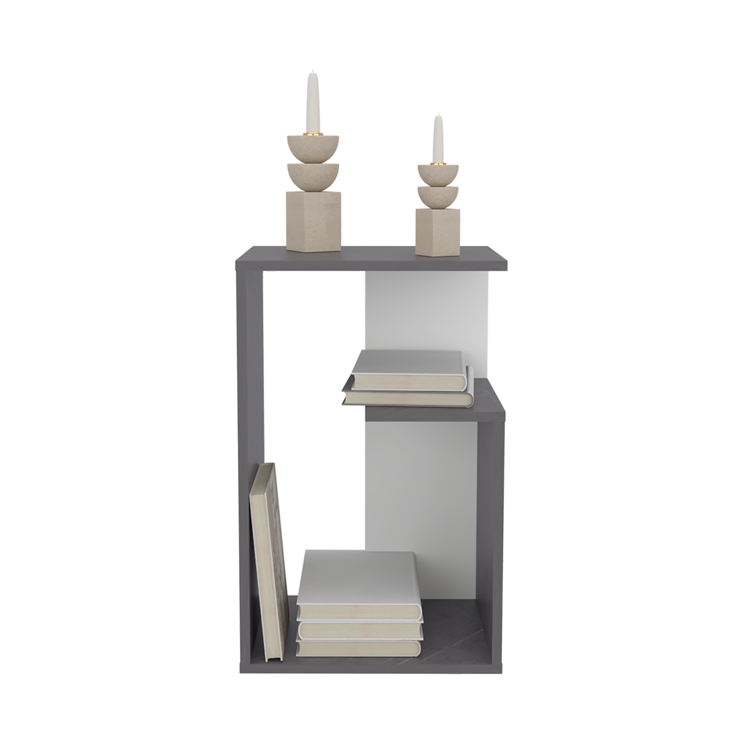 Mesa Auxiliar Rectangular Everett Onix y Blanco 40x63cm con Tres Compartimientos