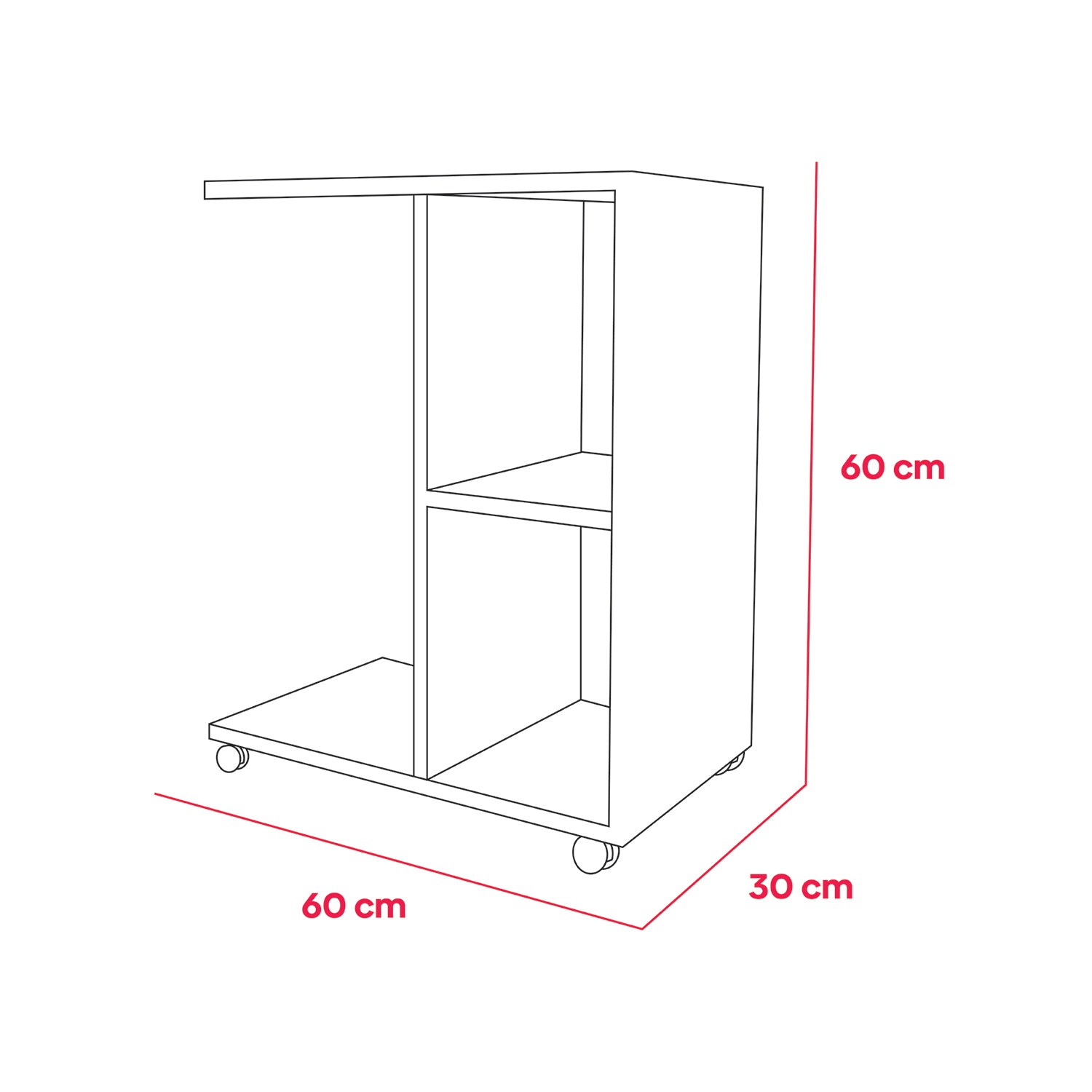 Mesa Auxiliar Zamora Beige 60x60cm Rectangular con Ruedas
