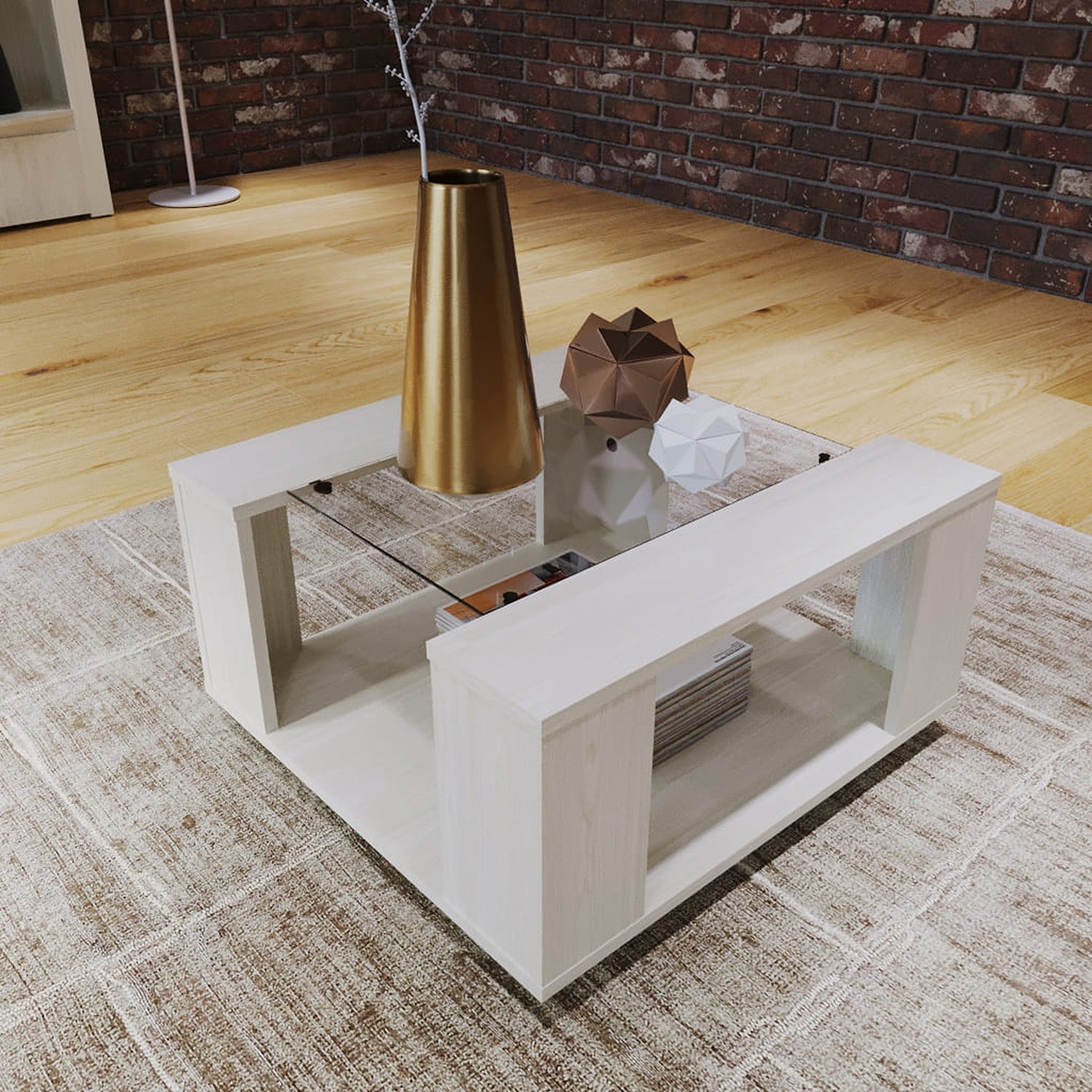 Mesa de Centro Comoros Niebla 60.2x31.7cm Rectangular y con Compartimientos