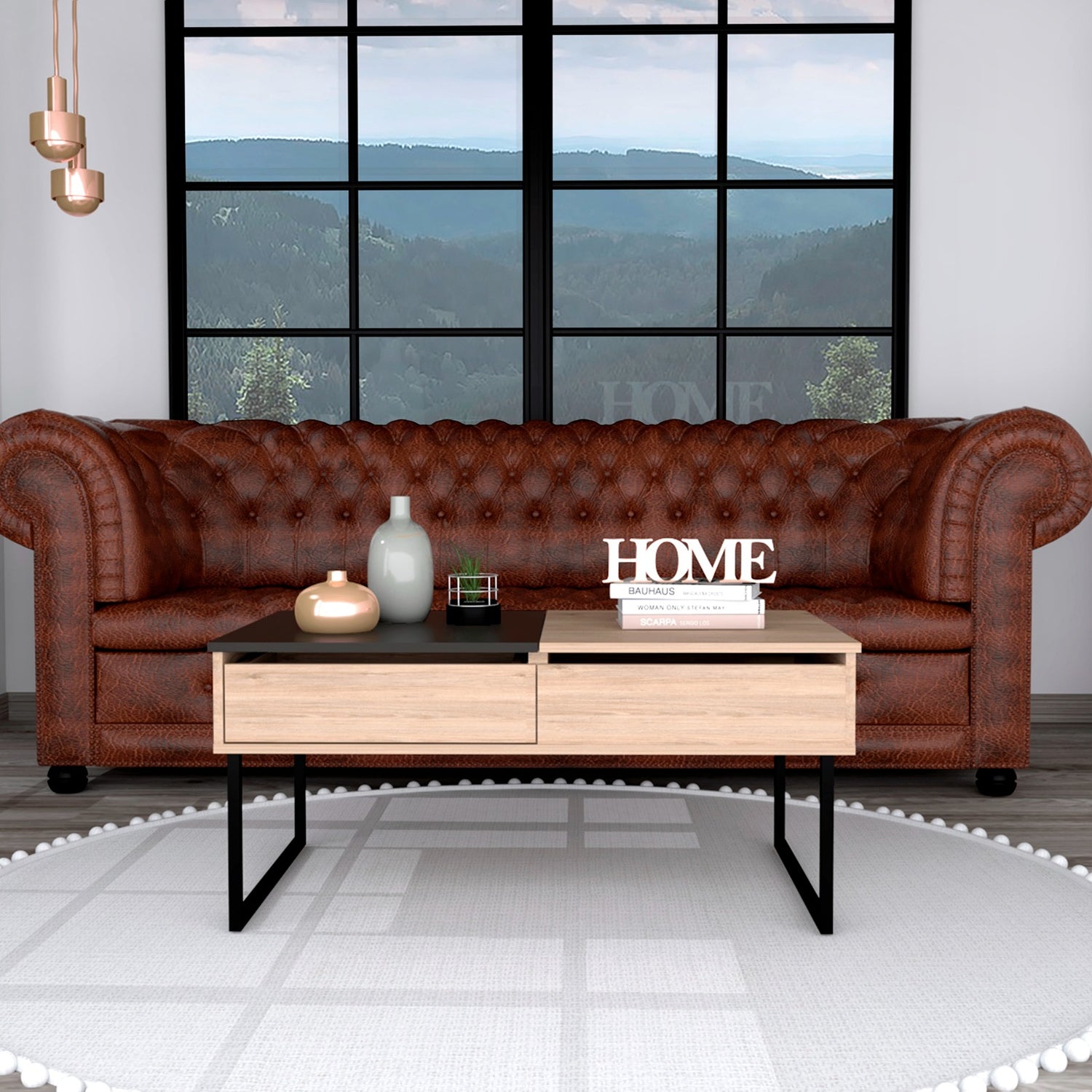 Mesa de Centro Extensible Funcentral Rovere Wengue 101.5x45.7cm con Un Cajón