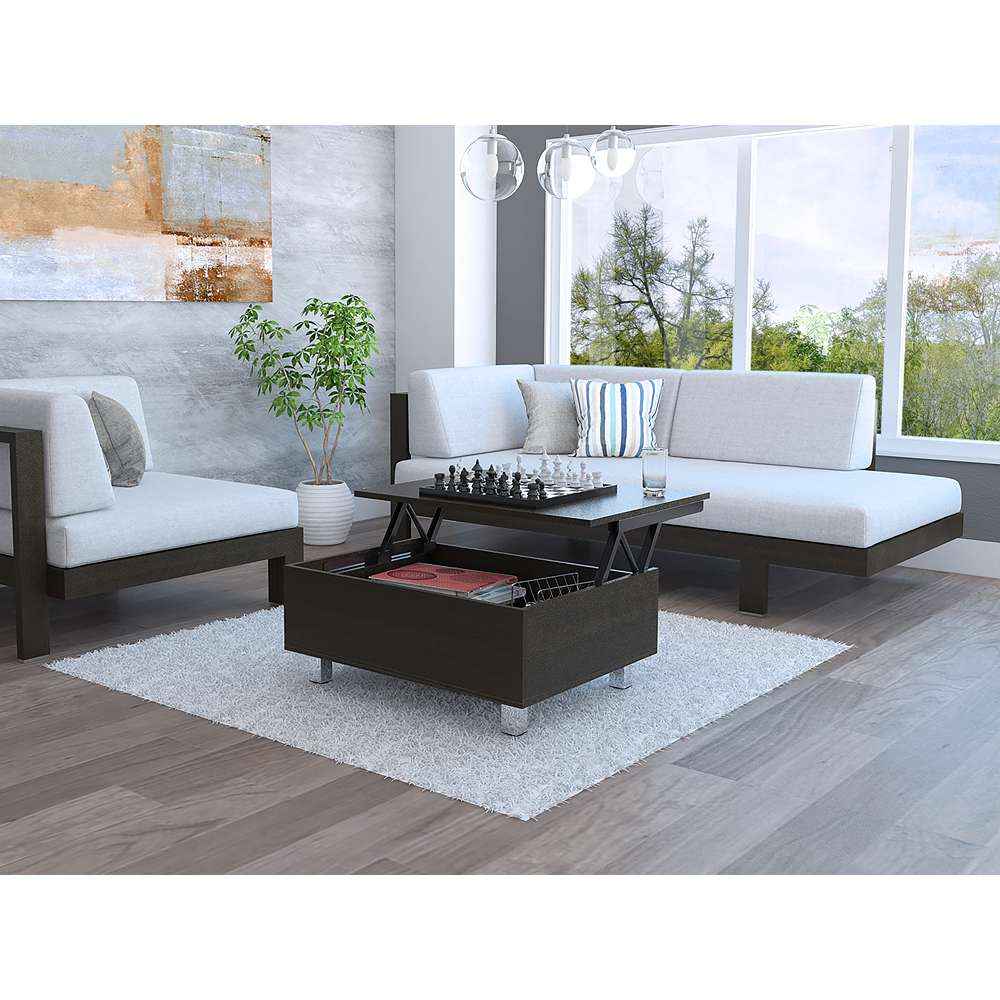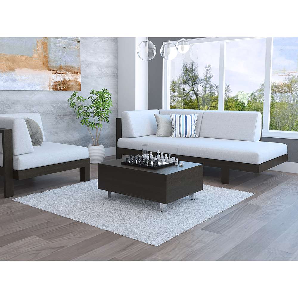 Mesa de Centro Gambia Wengue 80x29.75cm Rectangular con Patas y con Compartimientos