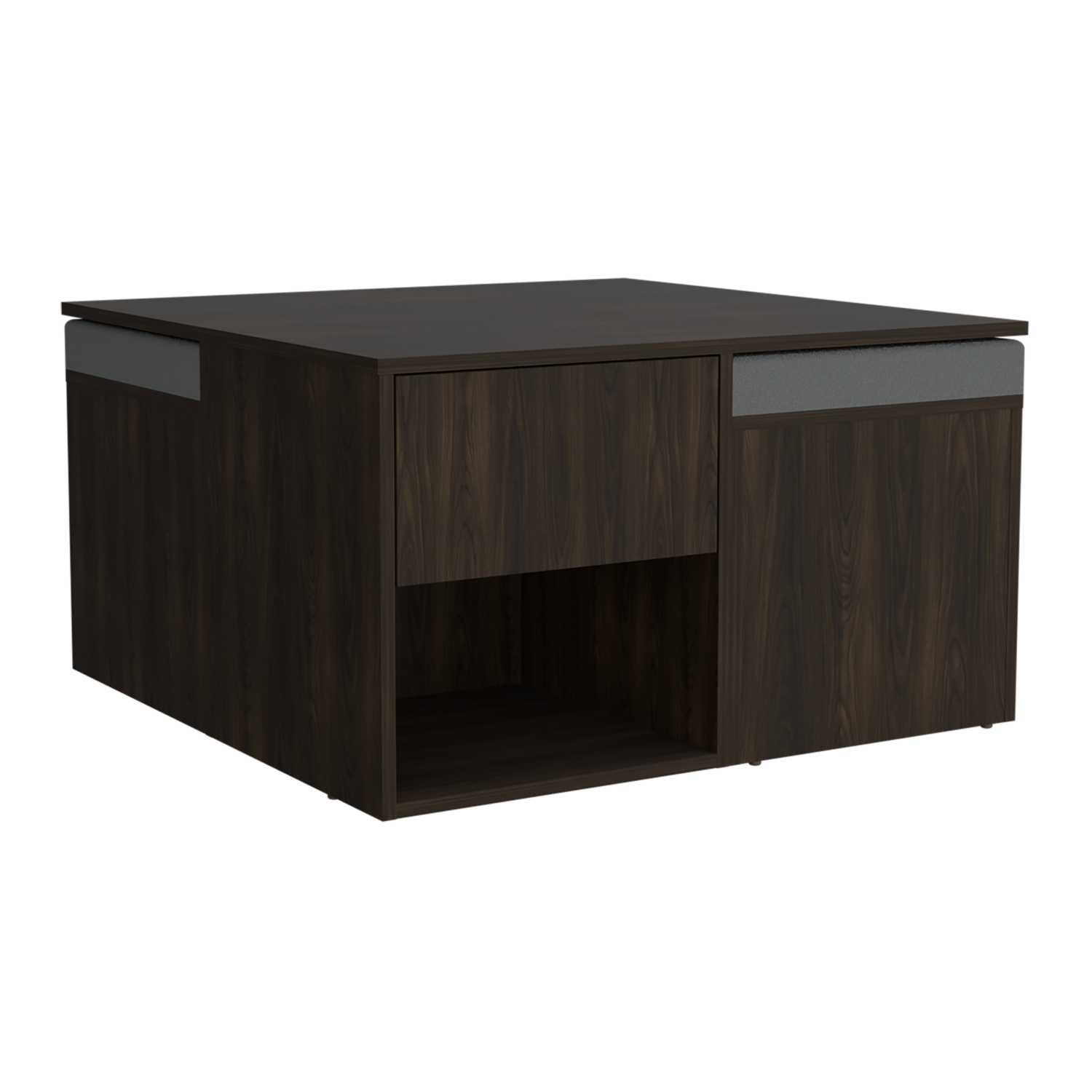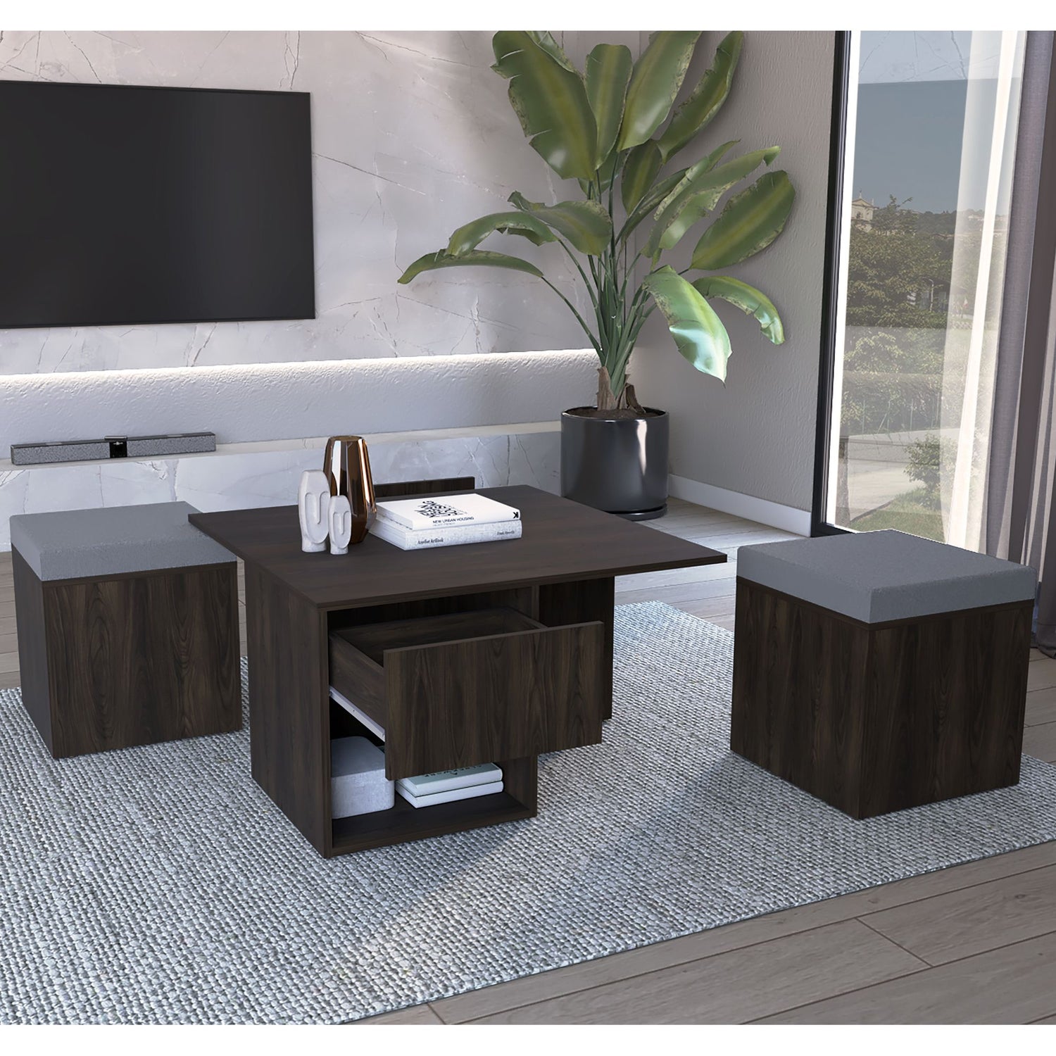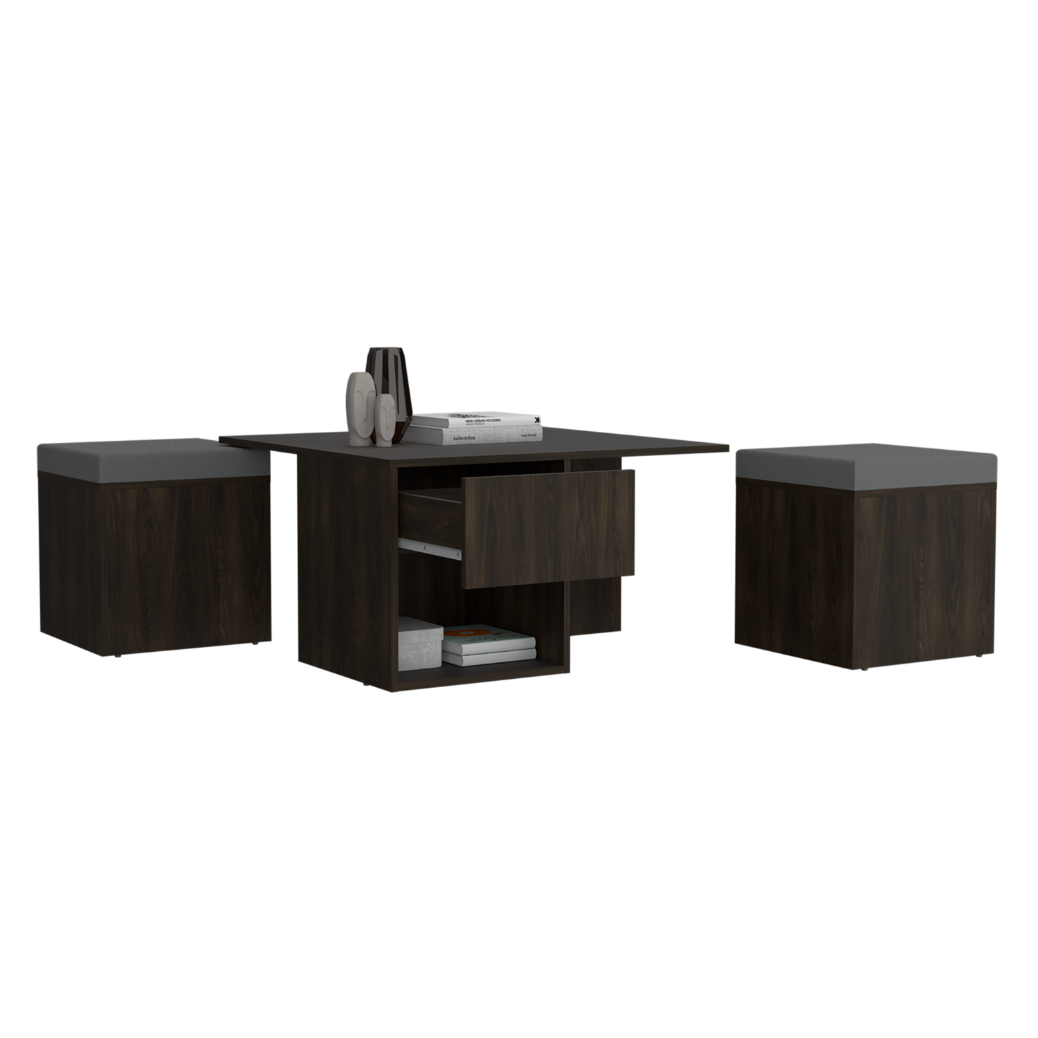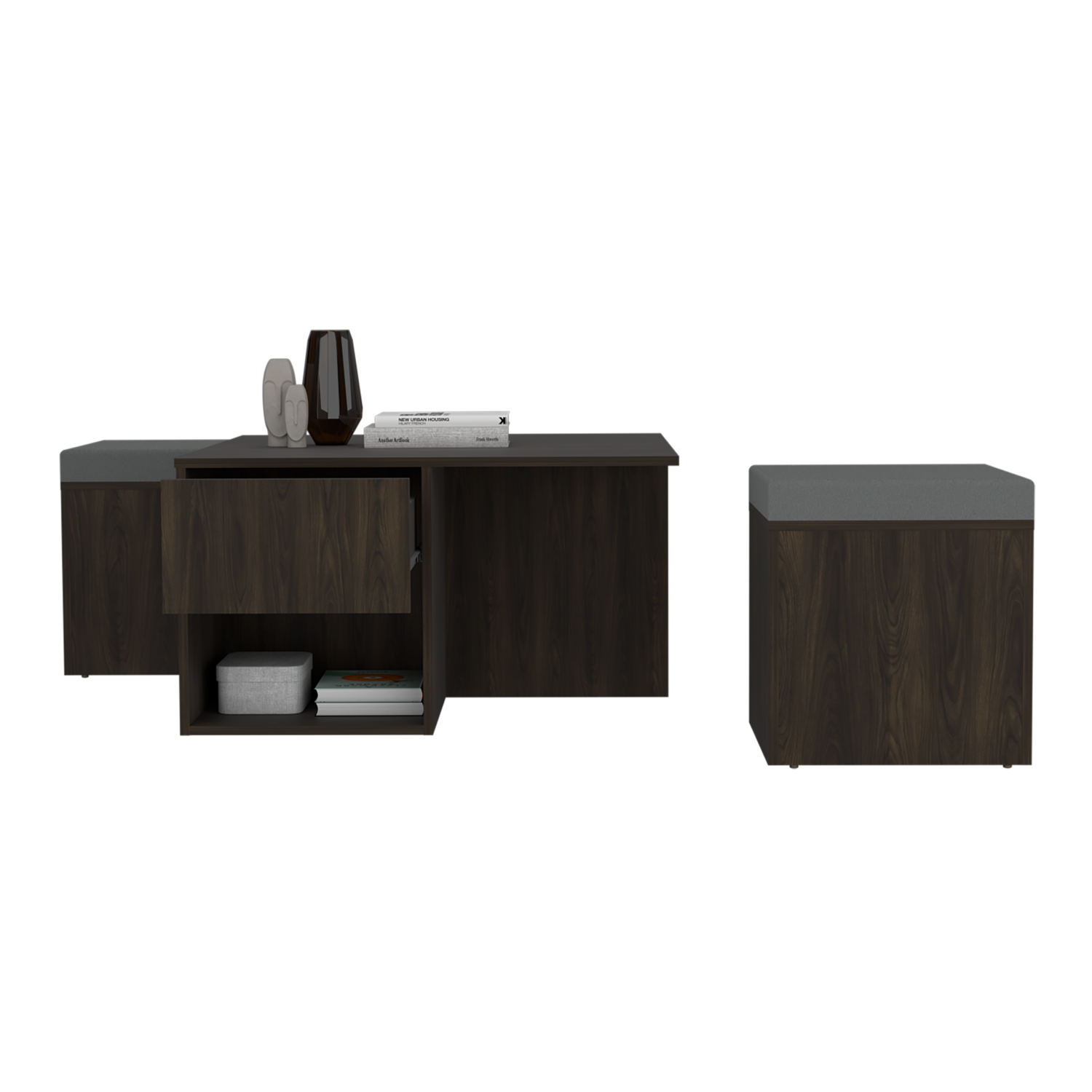 Mesa de Centro Lucien Nogal 80x45cm con Dos Asientos y con Compartimiento