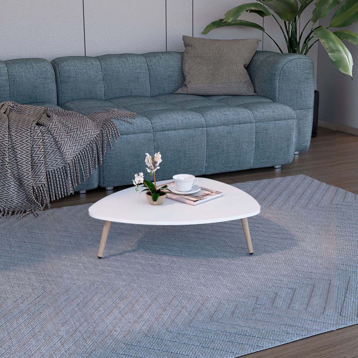 Mesa de Centro Narvik Blanco 74x21.5cm Triangular con Patas
