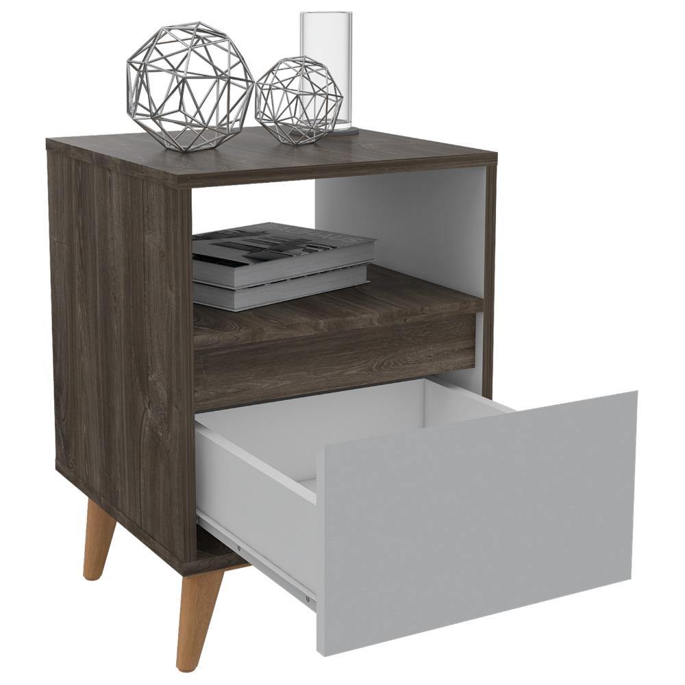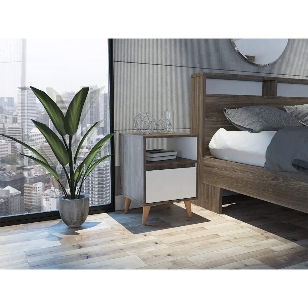 Mesa de Noche Almeria Siena y Blanco 40 cm con Un Cajón
