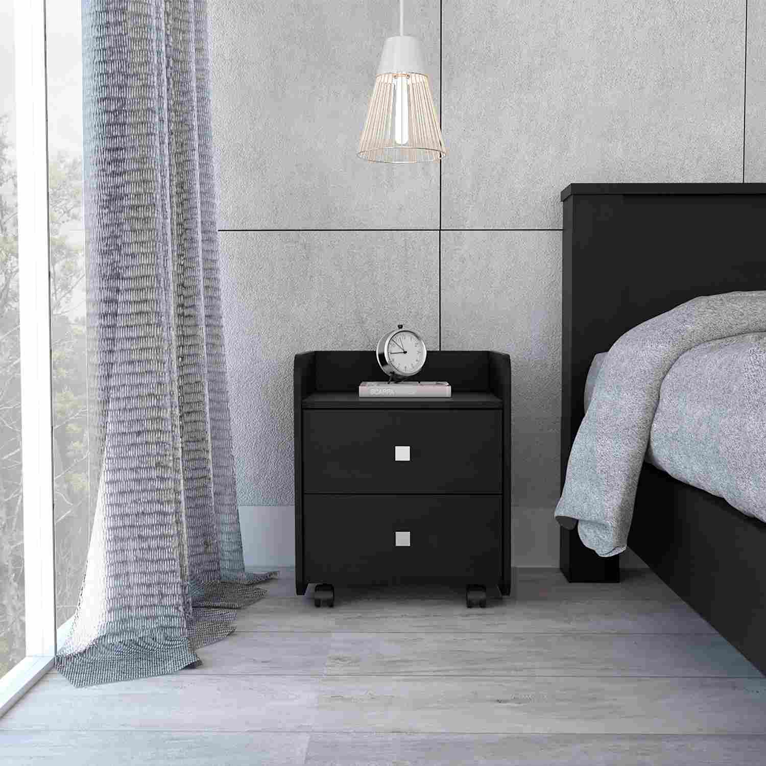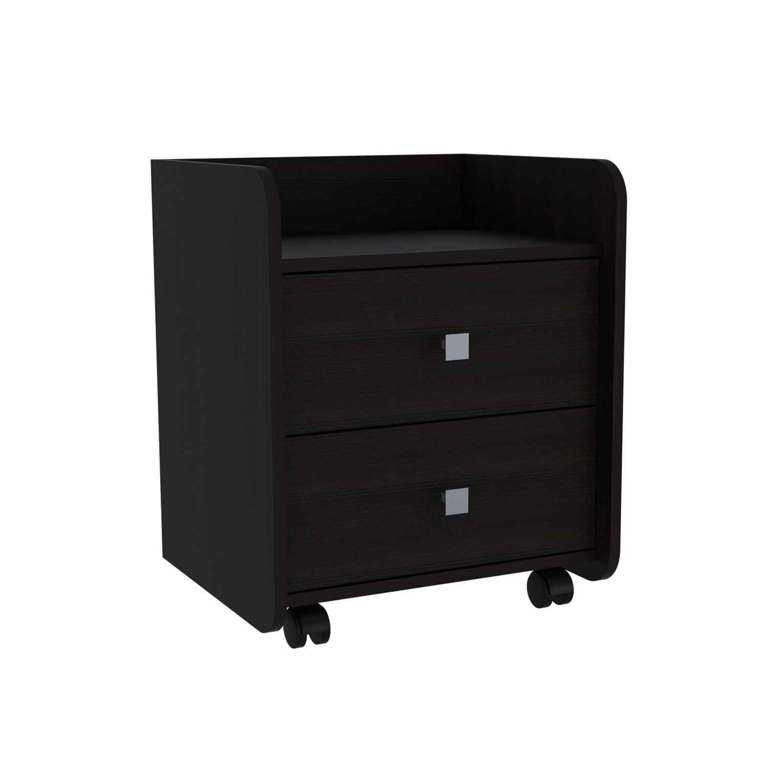 Mesa de Noche Aura Wengue 46x56cm con Dos Cajones y con Un Compartimiento