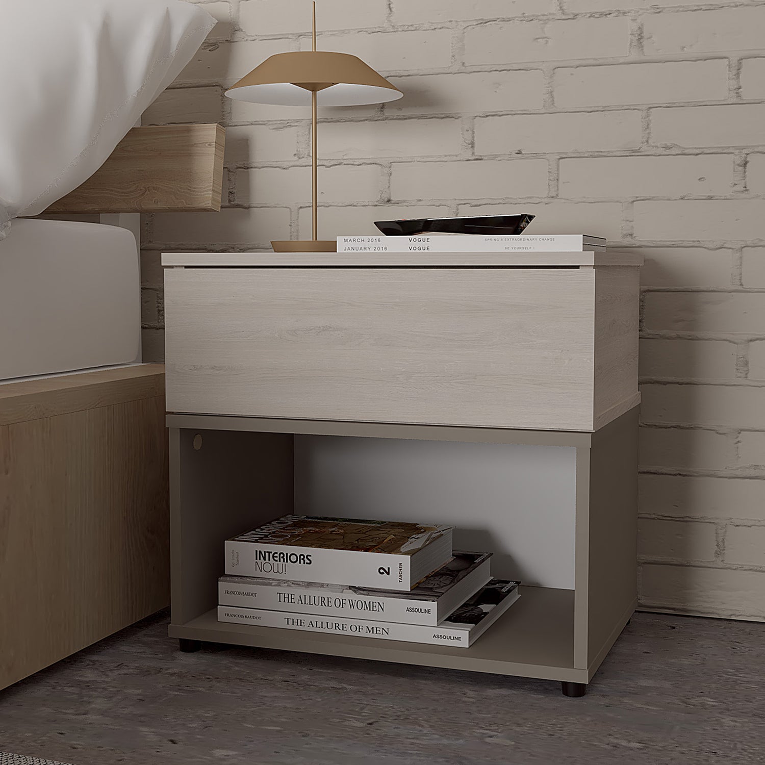 Mesa de Noche Chantilli y Taupe 53x50cm con Dos Entrepaños y con Patas