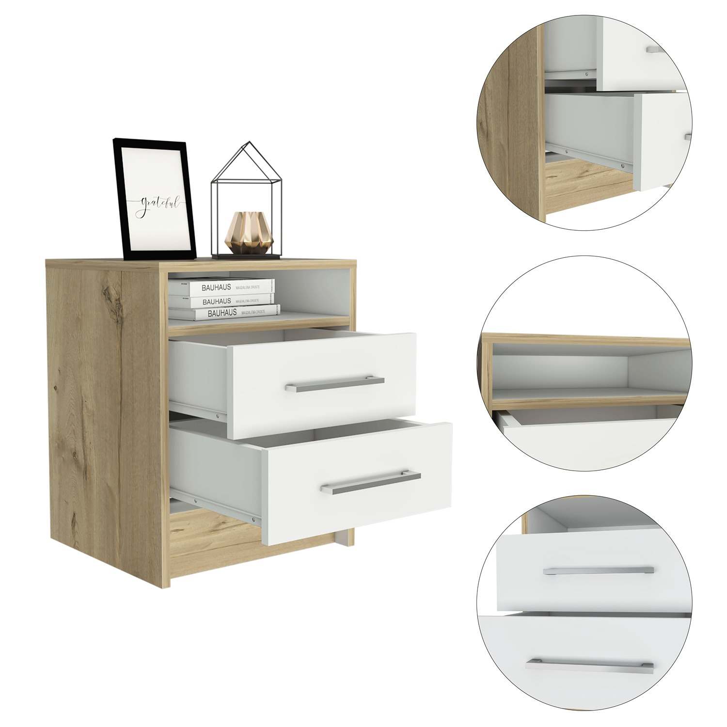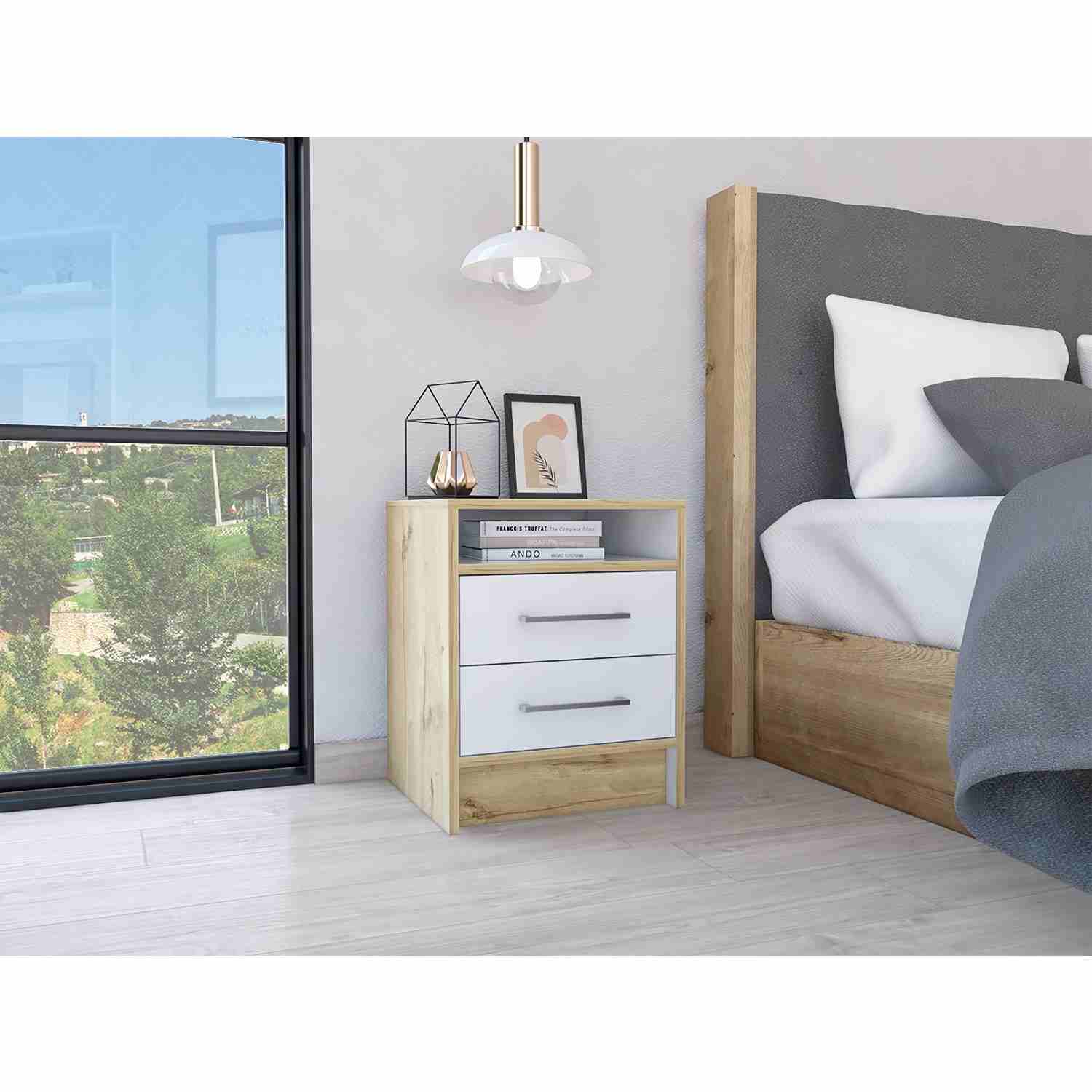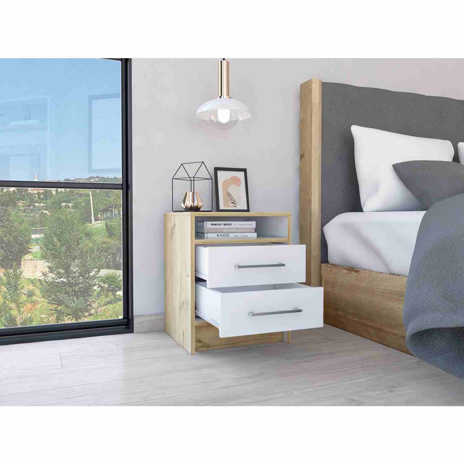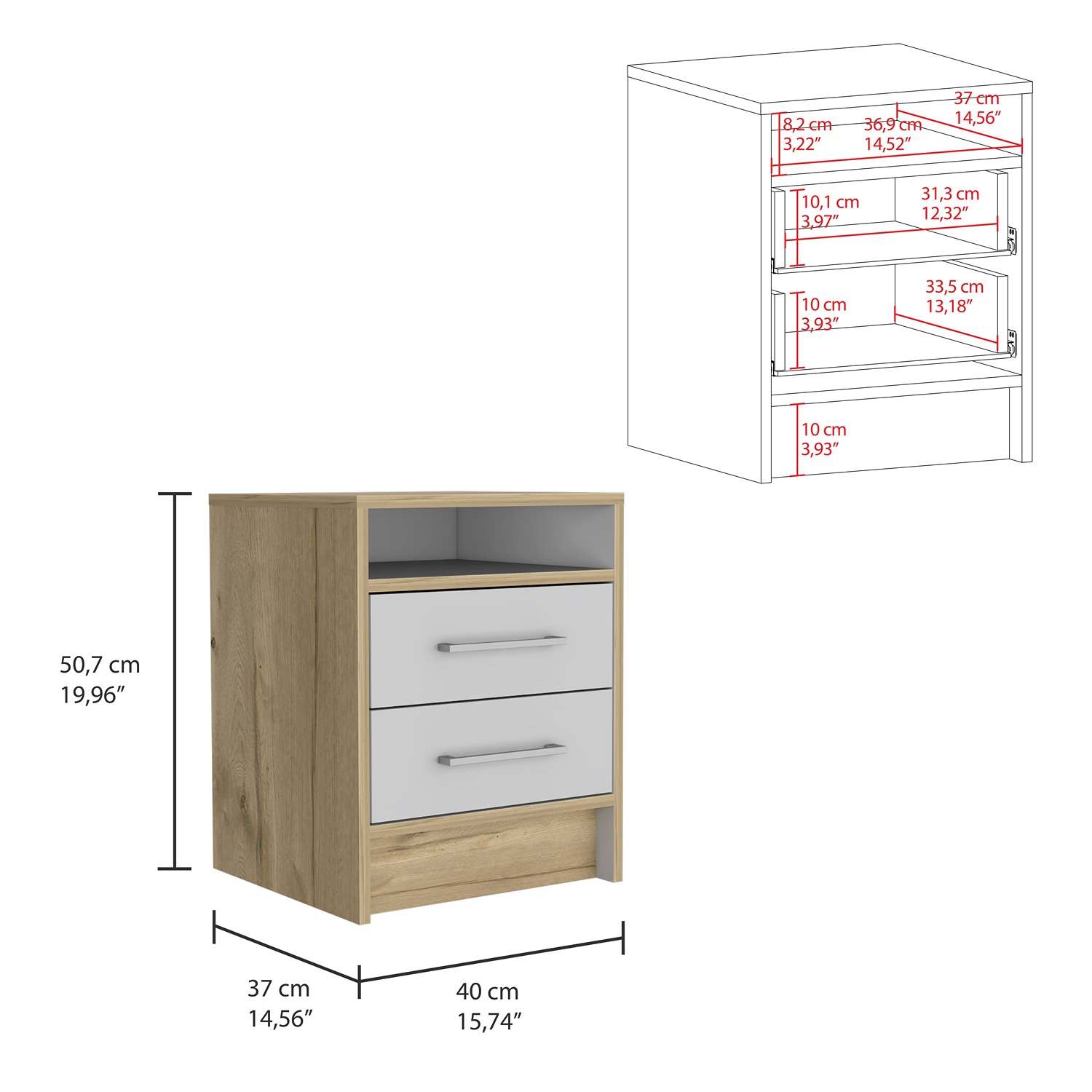 Mesa de Noche Eter Plus Duna 40x51cm con Dos Cajones y con Un Compartimiento