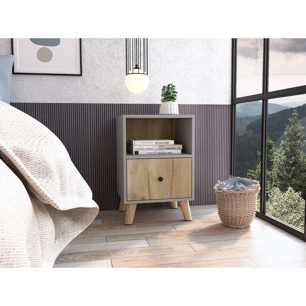 Mesa de Noche Hamilton Gris y Duna 40 cm con Un Cajón