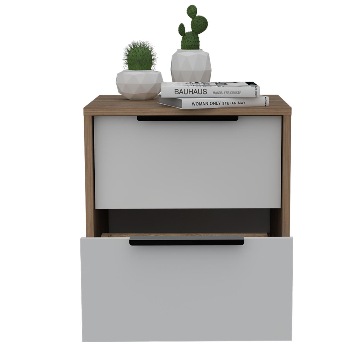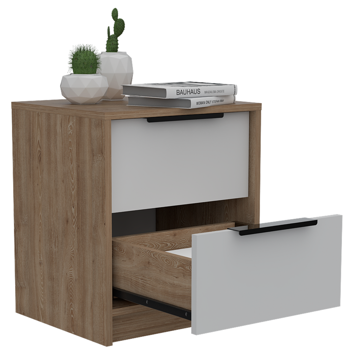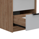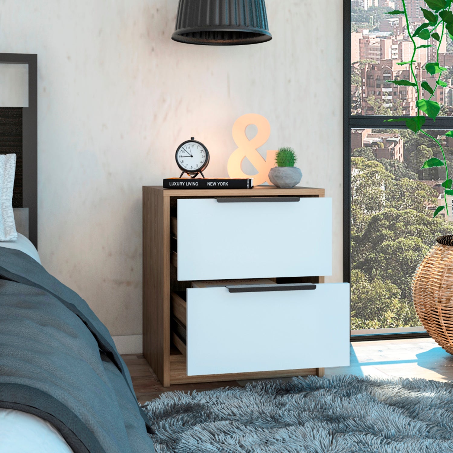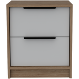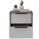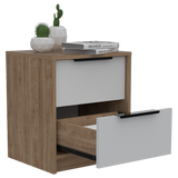 Mesa de Noche Kaia Miel y Blanco 41x48cm con Dos Cajones