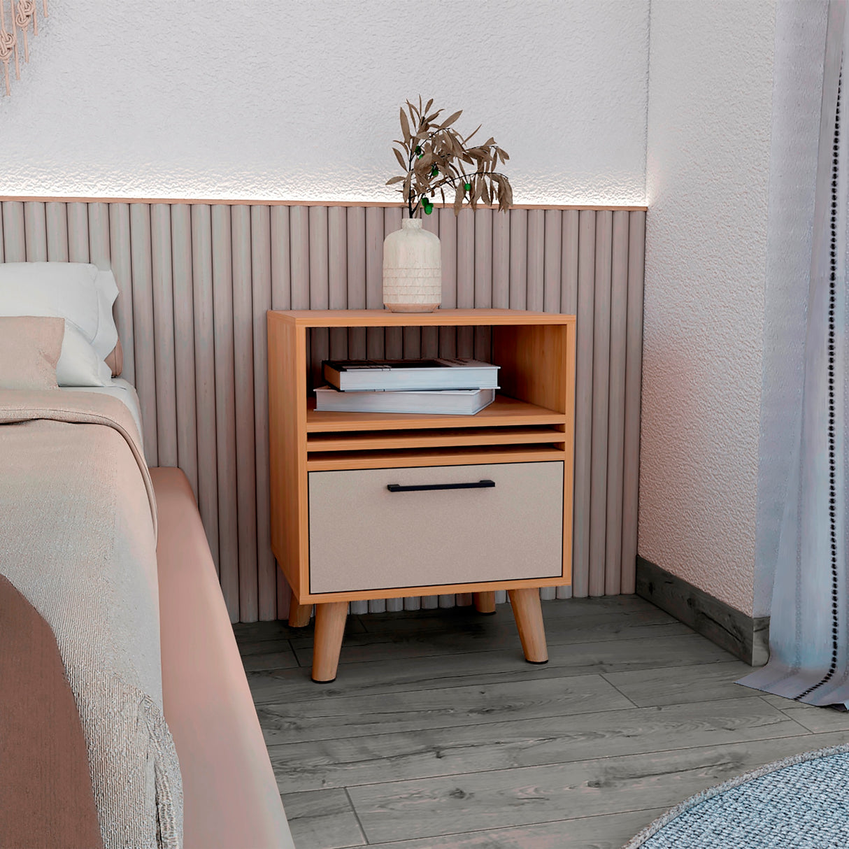 Mesa de Noche Vance Fresno Europeo y Capri 48x62.4cm con Un Cajón