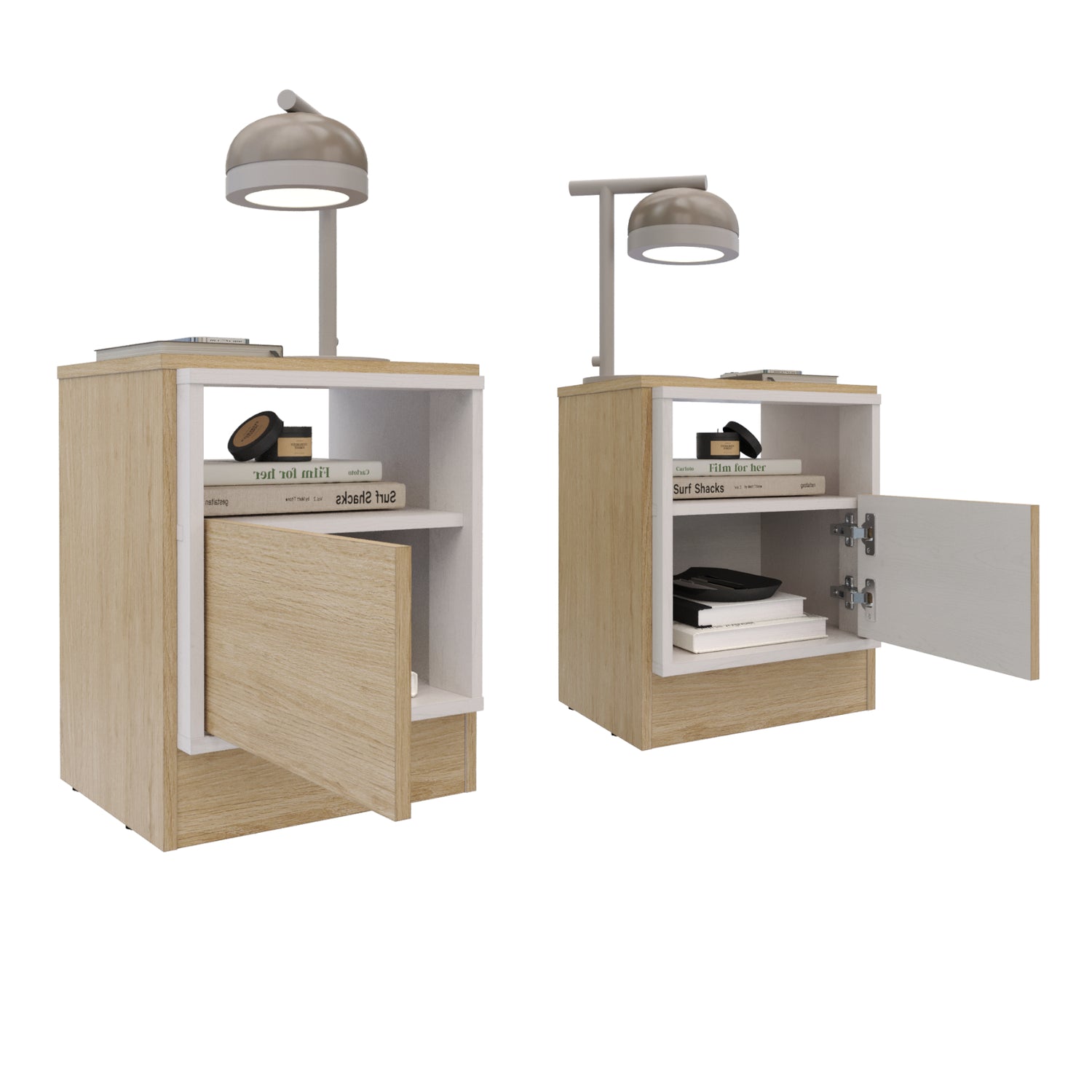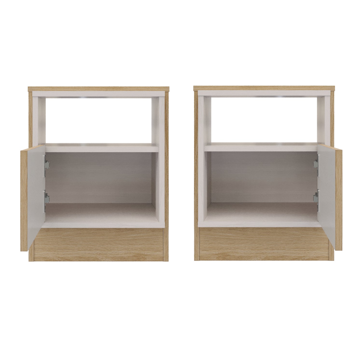 Renueva tu dormitorio con este set de mesas de noche Lucas en color rovere y blanco. Además de ser un complemento funcional, refleja tu estilo y personalidad. El set incluye dos mesas de noche con un cajón cada una, perfectas para mantener tus objetos personales organizados y a mano. Fabricadas con madera aglomerada MDP, garantizan resistencia y durabilidad. ¡Haz de tu dormitorio un lugar acogedor y funcional con este set de mesas de noche Lucas!
