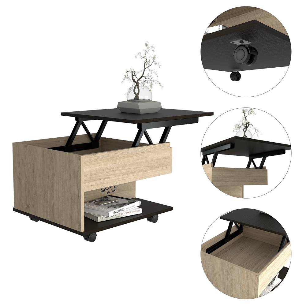 Mesa de Centro Rovere 55x39cm Rectangular Transformable Con Ruedas