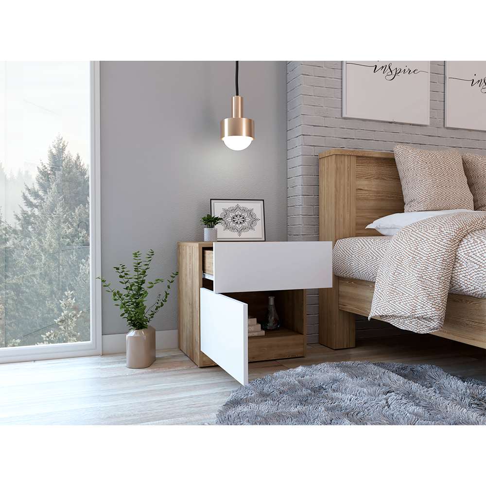Mesa de Noche Nebraska Miel 50x52.6cm con Un Cajón y con Una Puerta