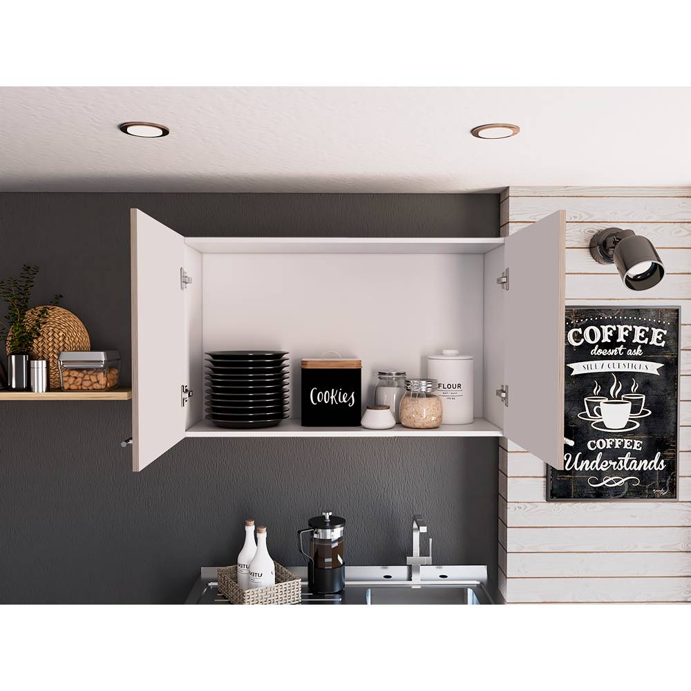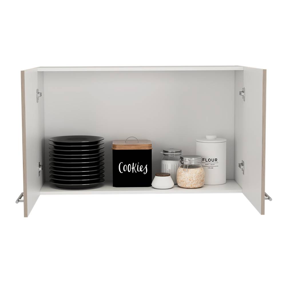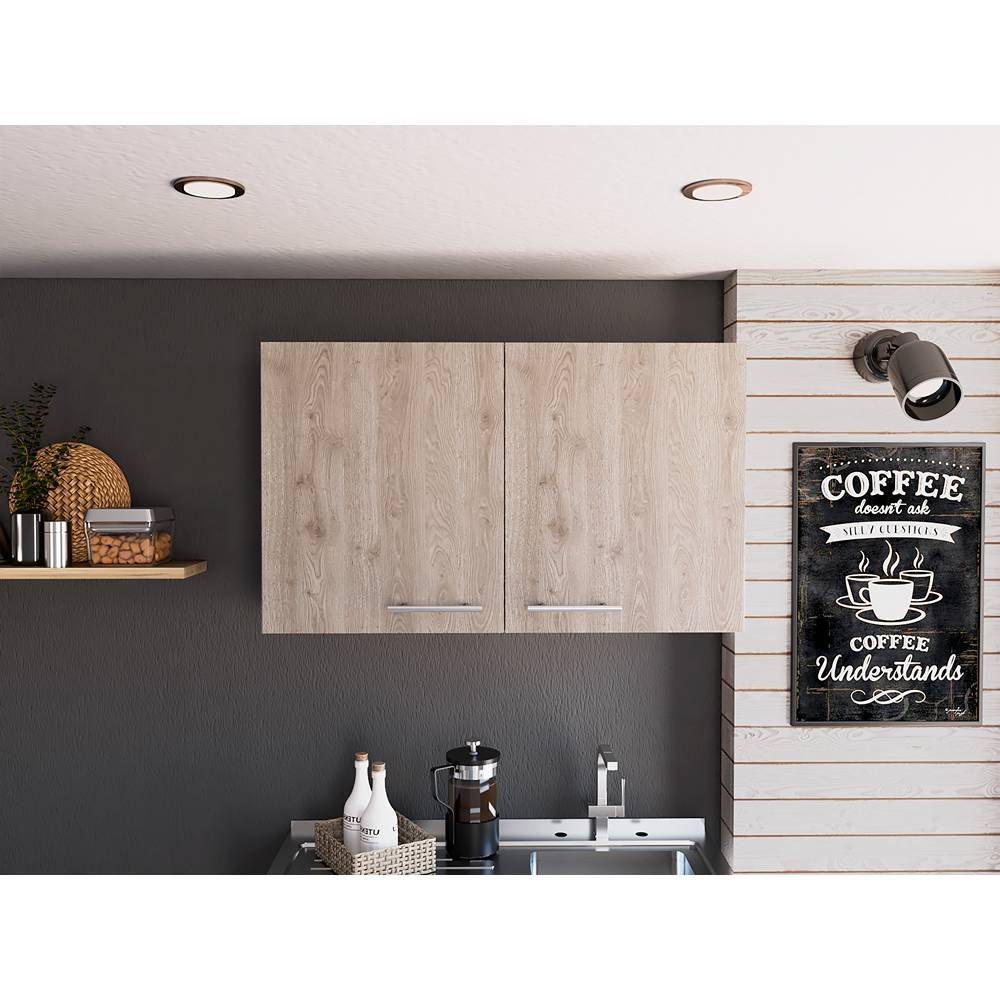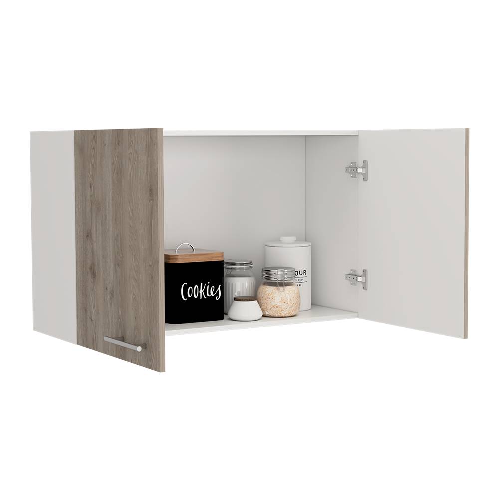 Mueble aereo con dos puertas, amplio espacio para almacenamiento con manijas metalicas