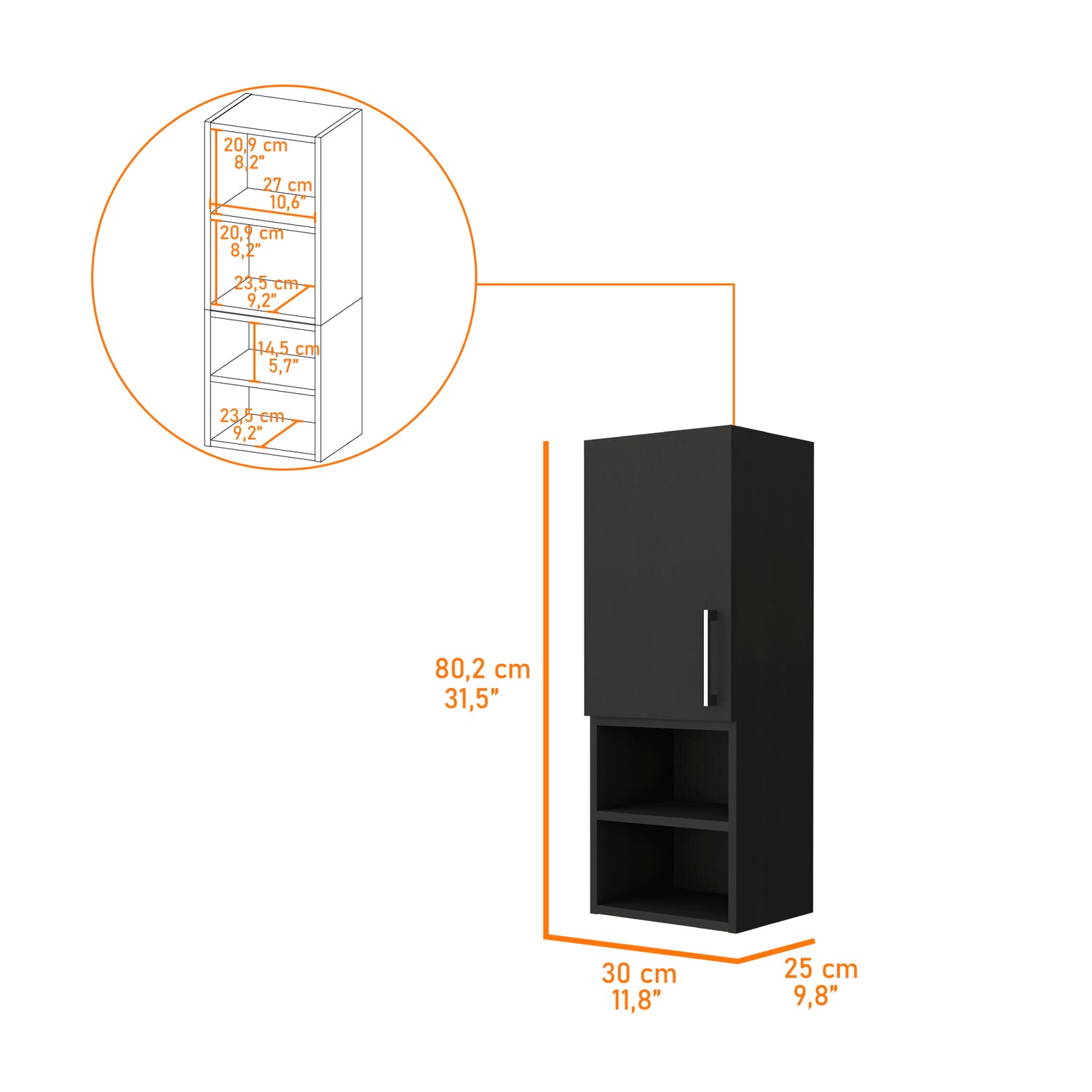 Gabinete de Baño Madrid Wengue 30x80cm Rectangular sin Espejo y con Dos Entrepaños