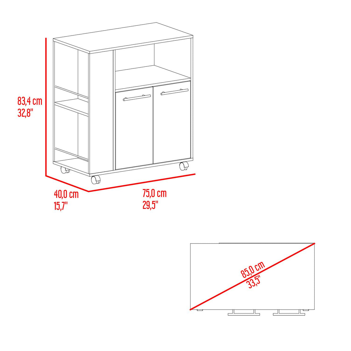 Mueble Auxiliar de Cocina Eldon Wengue y Bardolino 75x83.4cm Con Cinco Compartimientos y Con Ruedas