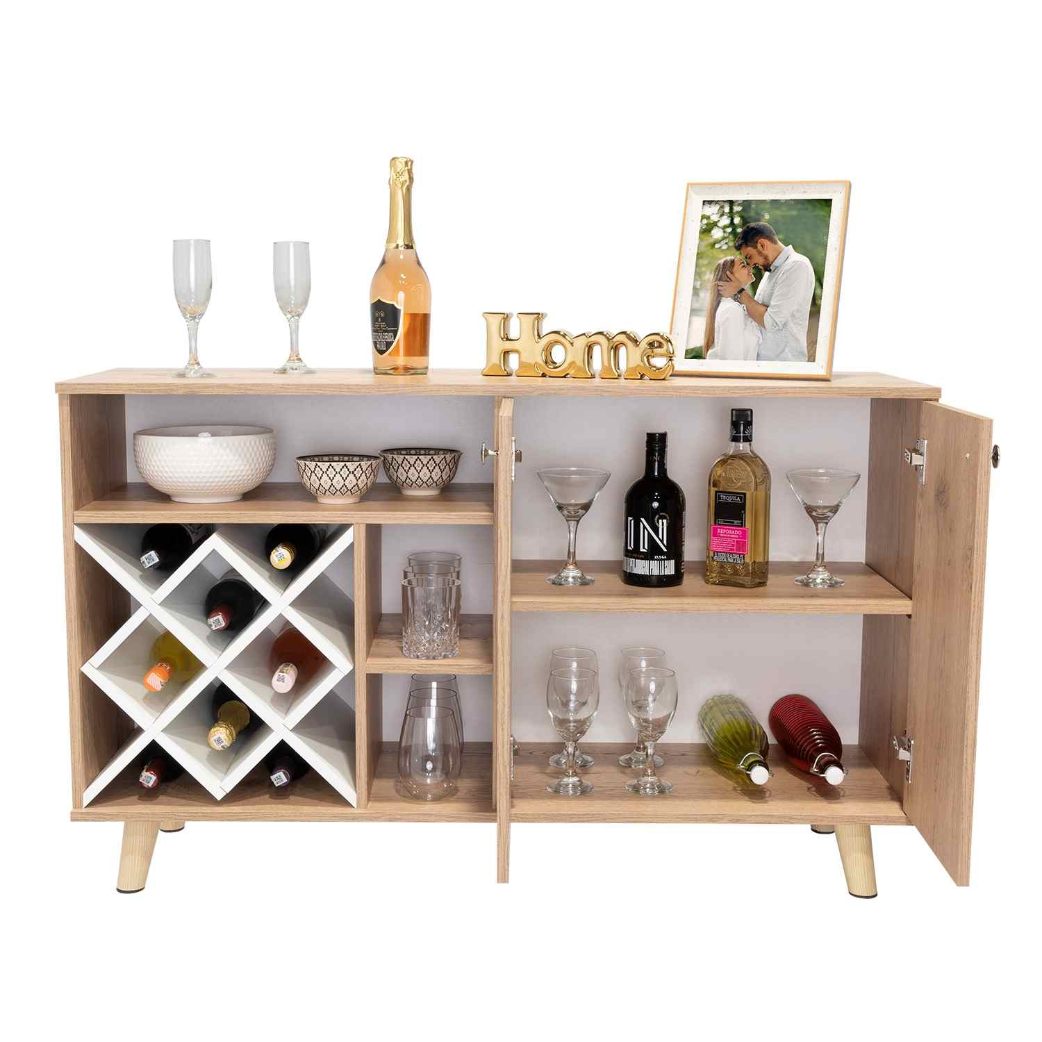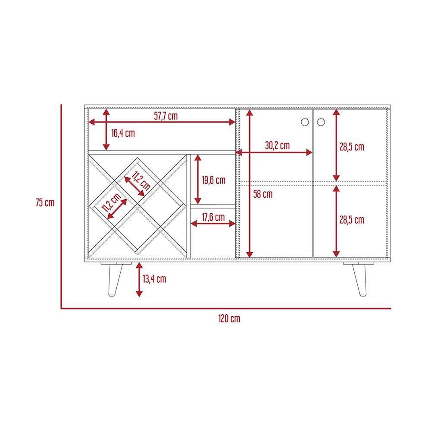 Transforma tu espacio en un elegante y moderno bar con nuestro mueble bar Vithi en color Macadamia. Con cinco compartimientos y ocho portabotellas, tendrás todo lo necesario para almacenar tu colección de vinos y licores. Además, su botón metálico permite un fácil acceso a tus bebidas favoritas. Las patas metálicas le dan estabilidad y su diseño es fácil de armar con el manual y herrajes incluidos. No pierdas la oportunidad de tener un bar en casa con estilo y funcionalidad. ¡Hazte con el mueble bar Vithi Macadamia y sorprende a tus invitados!