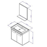 Incluye: - Un (1) espejo - Un (1) lavamanos en BMC - Dos (2) puertas - Una (1) repisa en vidrio - Bisagras metálicas - Manija en ABS metalizado - Kit de herrajes - Manual de armado
