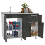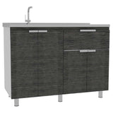 Mueble Inferior Fendi Roble Gris 120x88cm con Mesón de Acero Inoxidable y con Pozuelo Para Izquierdo O Derecho
