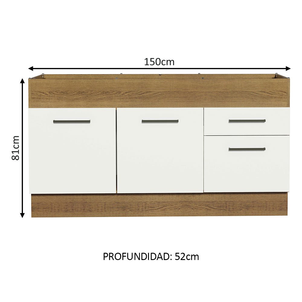 Mueble Inferior de Cocina Agata Marron y Blanco 150x81cm sin Mesón sin Estufa y con Dos Cajones