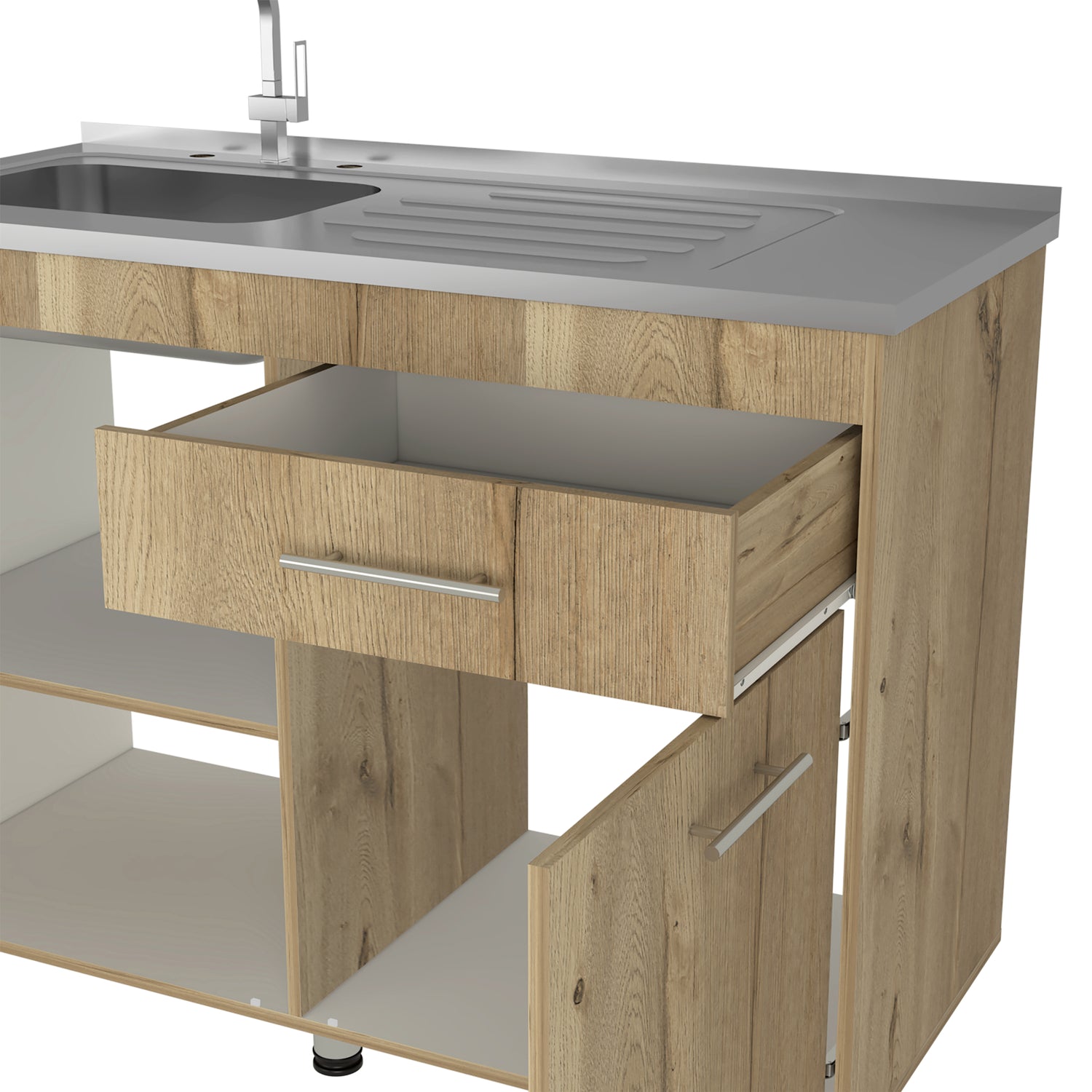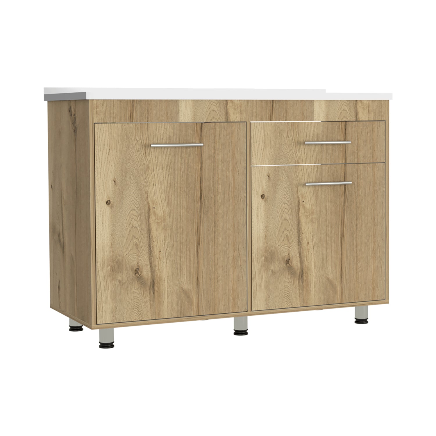 Mueble Inferior de Cocina Orion Duna y Blanco 120x90.5cm Con Mesón de Acero Izquierdo