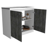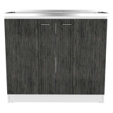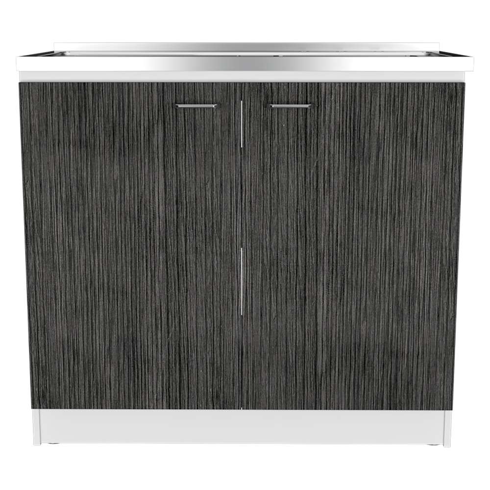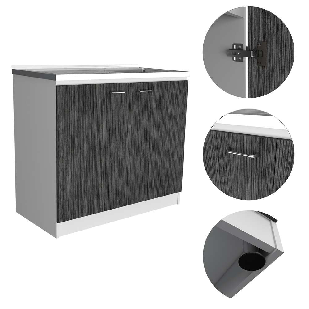 Mueble Inferior Napoles Blanco Nevado y Roble Gris 100x90cm con Mesón de Acero Inoxidable y con Pozuelo Lado Derecho