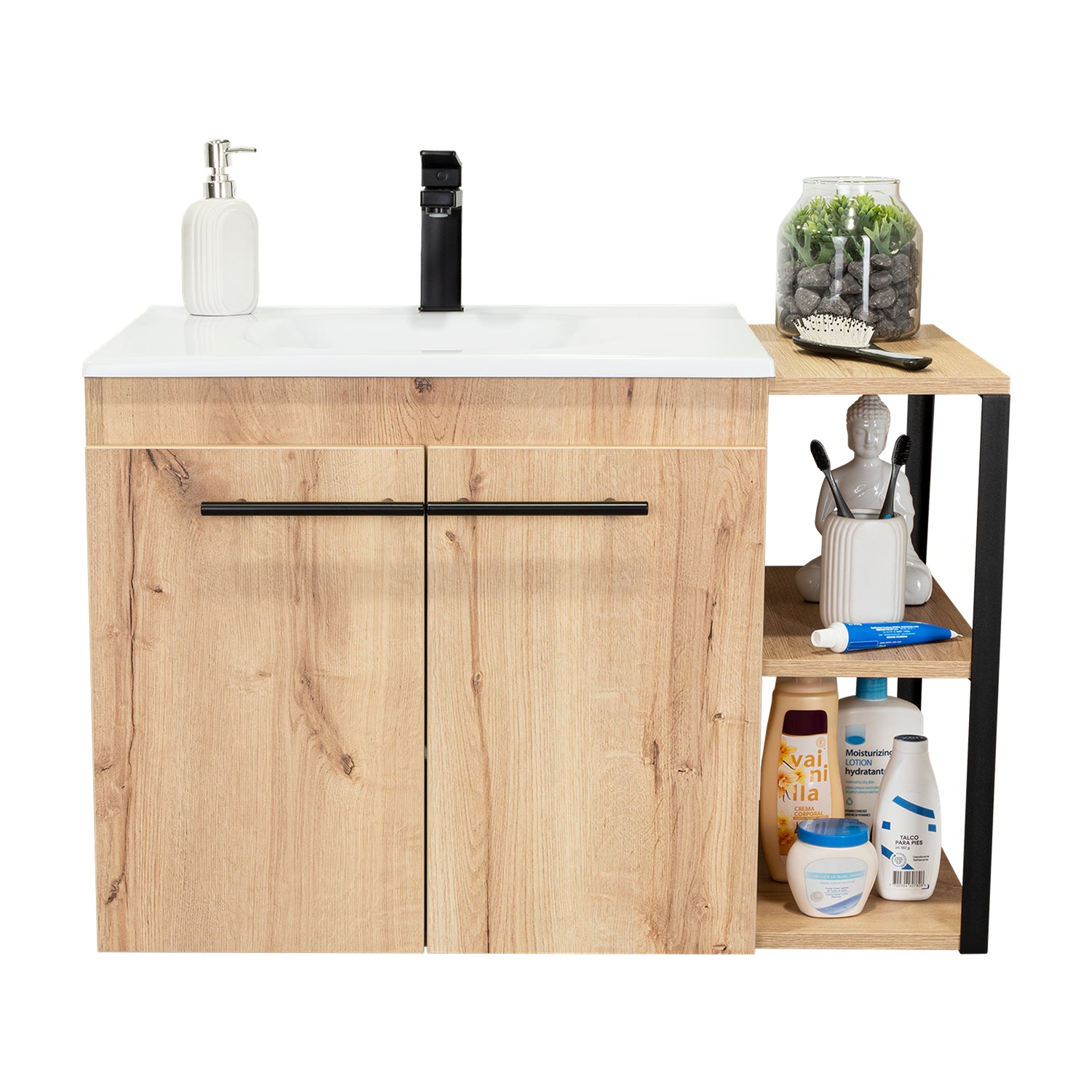 Renueva tu baño con estilo y funcionalidad gracias al mueble para lavamanos Khari Duna. Diseñado con un toque moderno, este mueble cuenta con dos puertas abatibles, manijas metálicas y amplios espacios de almacenamiento. Además, incluye un lavamanos para mayor comodidad. Armarlo es sencillo gracias al manual e herrajes incluidos. No te preocupes por accesorios o decoraciones, ya que no los necesitarás para que este mueble sea el protagonista de tu baño. ¡Aprovecha esta oportunidad y dale un toque de modernidad a tu baño con el mueble Khari Duna!