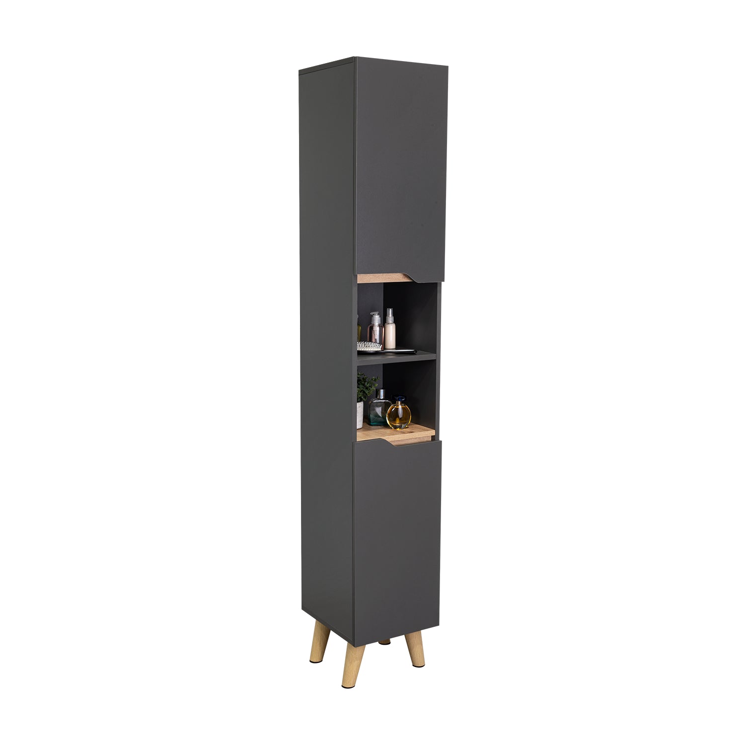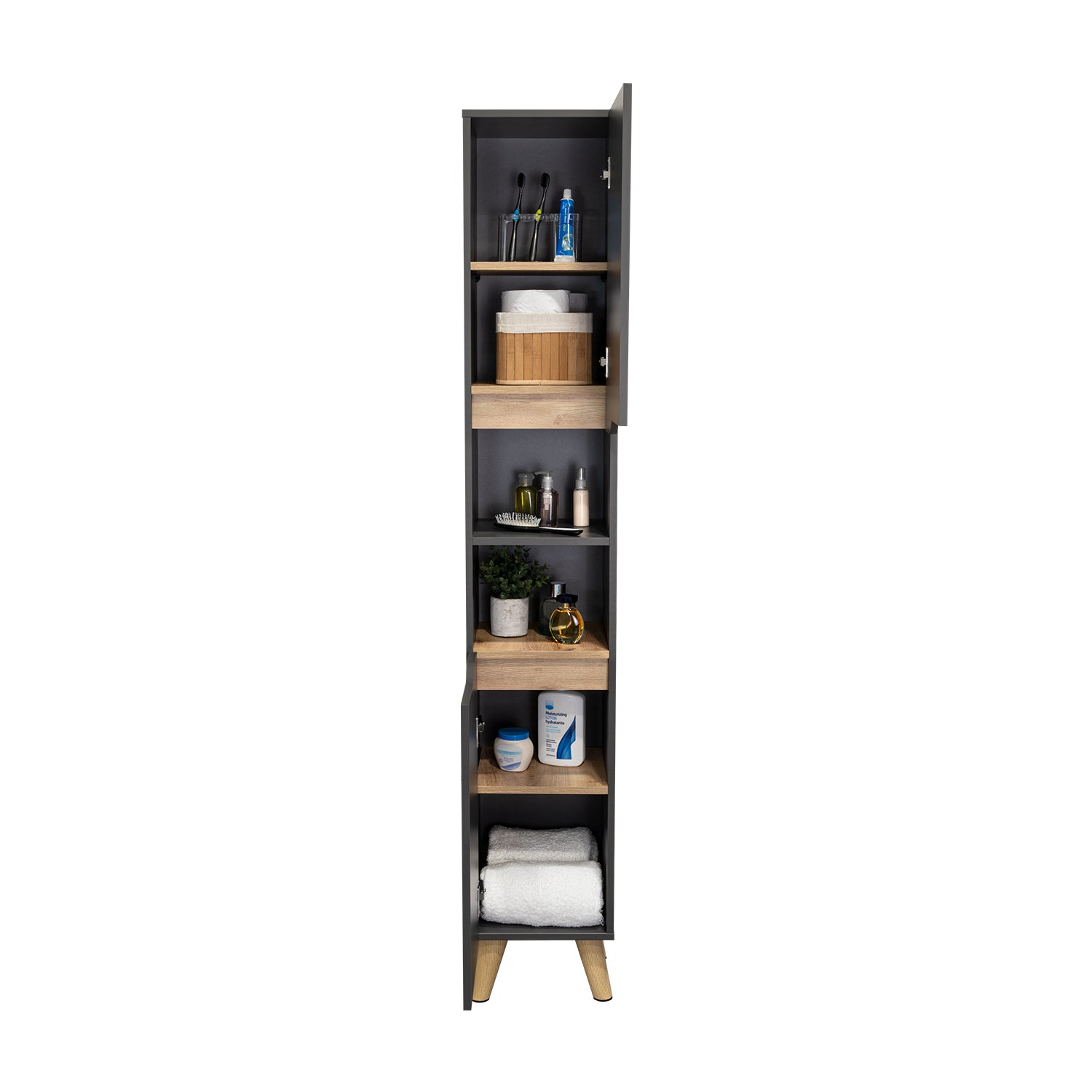 Mueble para Baño Laurent Plomo y Duna 30.1x180cm con Cinco Entrepaños y con Patas