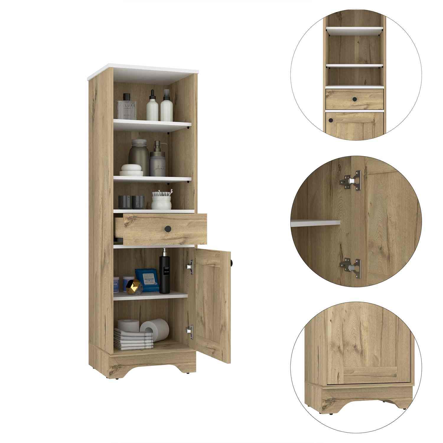 Mueble Columna para Baño Malaga Duna 33x142cm con Un Cajón y con Dos Entrepaños