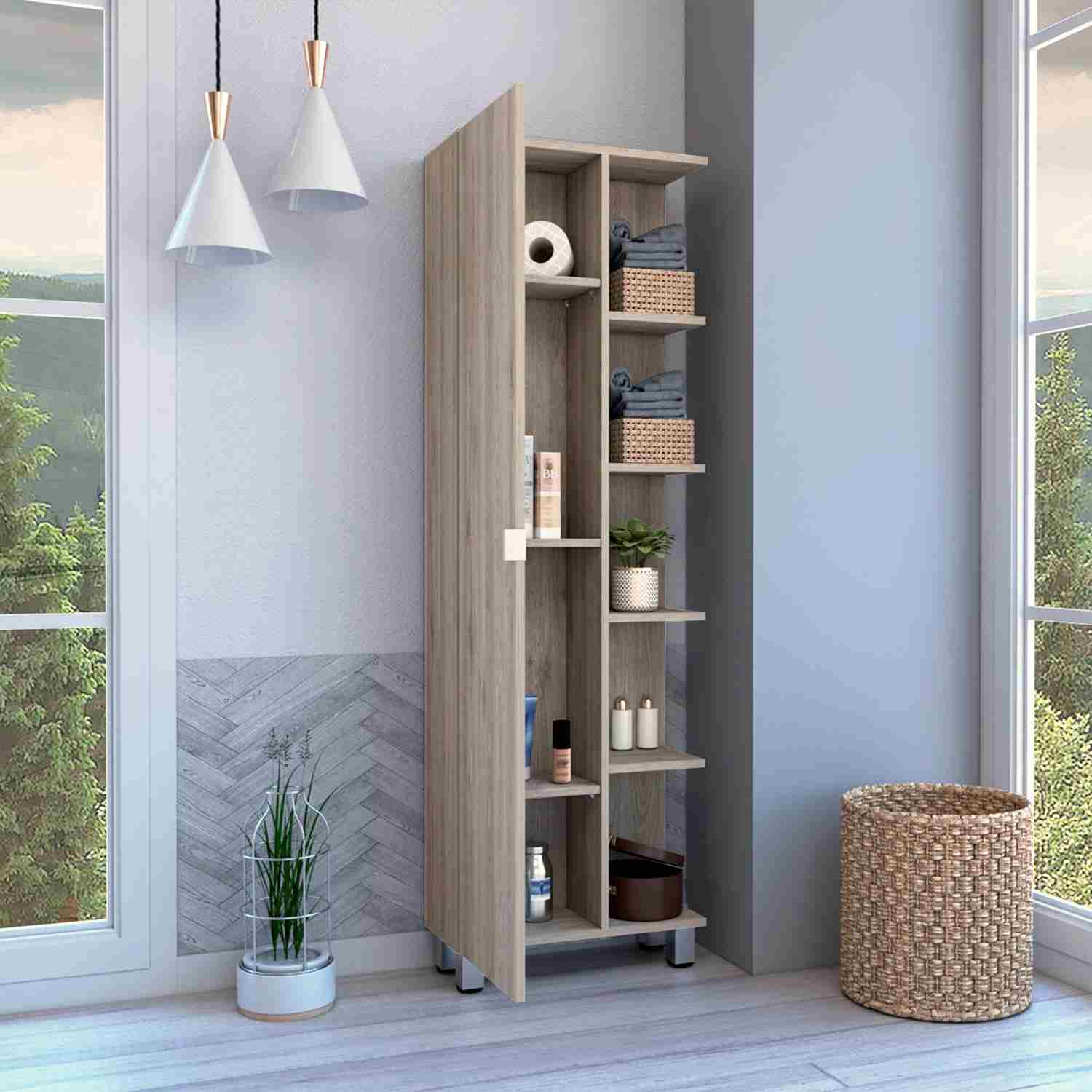 Mueble para Baño Esquinero Urano Ceniza 51x158cm sin Cajones y con Cuatro Entrepaños